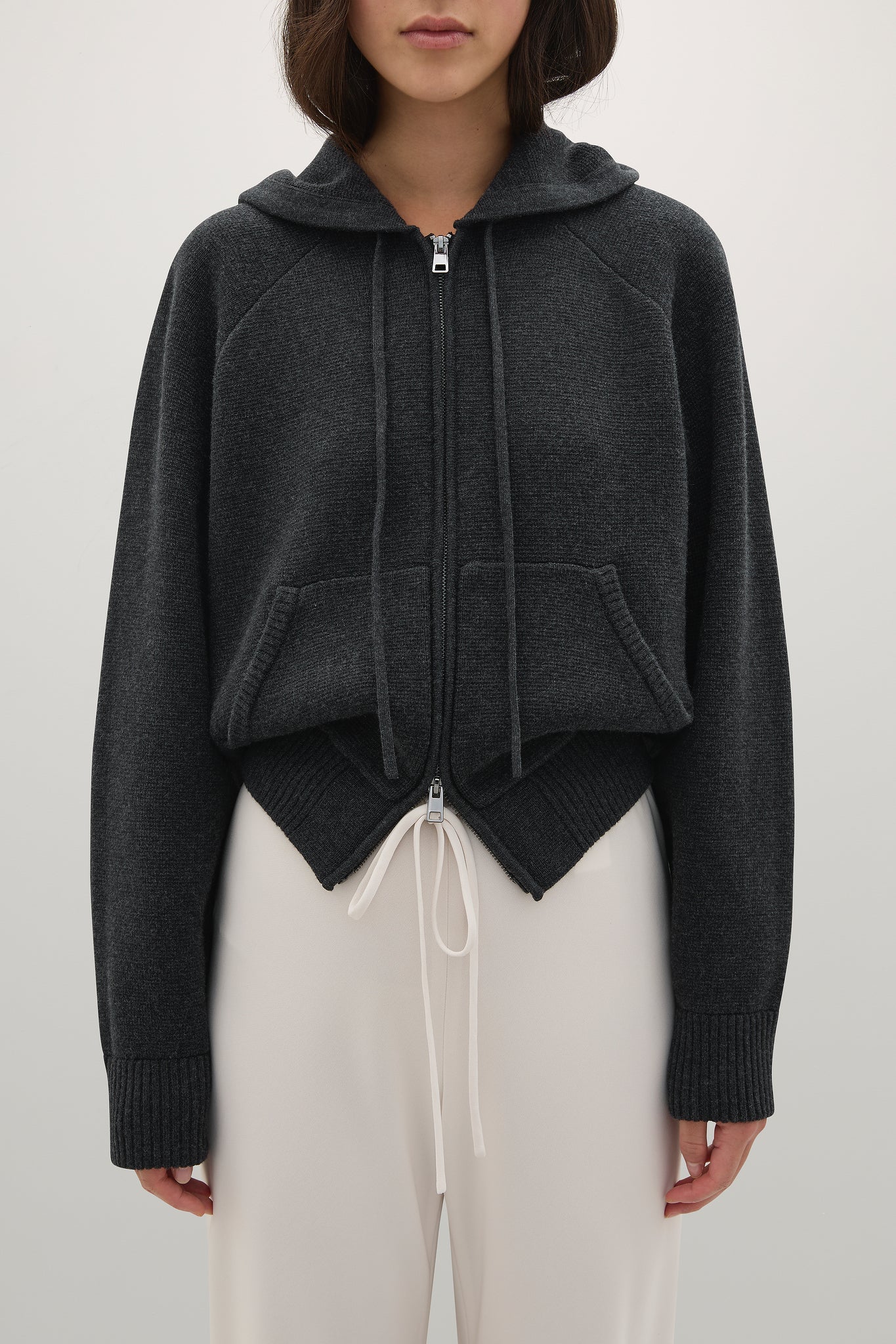 The Samuel Knit Hoodie is a classic hooded bomber jacket silhouette reimagined in knitwear, featuring a raglan sleeve, ribbed cuffs and a functional, two-way zip.