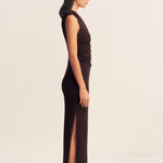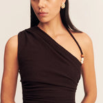 Shona Joy Beau Gathered Asymmetrical Midi Dress | Espresso