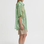 Shimmering like a mirage, the Luma Shirt in Green has a presence you cannot ignore. Short sleeves, a button-down front and a sheer sequin finish catch every shift of light. She carries a soft, fluid energy that makes every moment feel like it should be remembered.