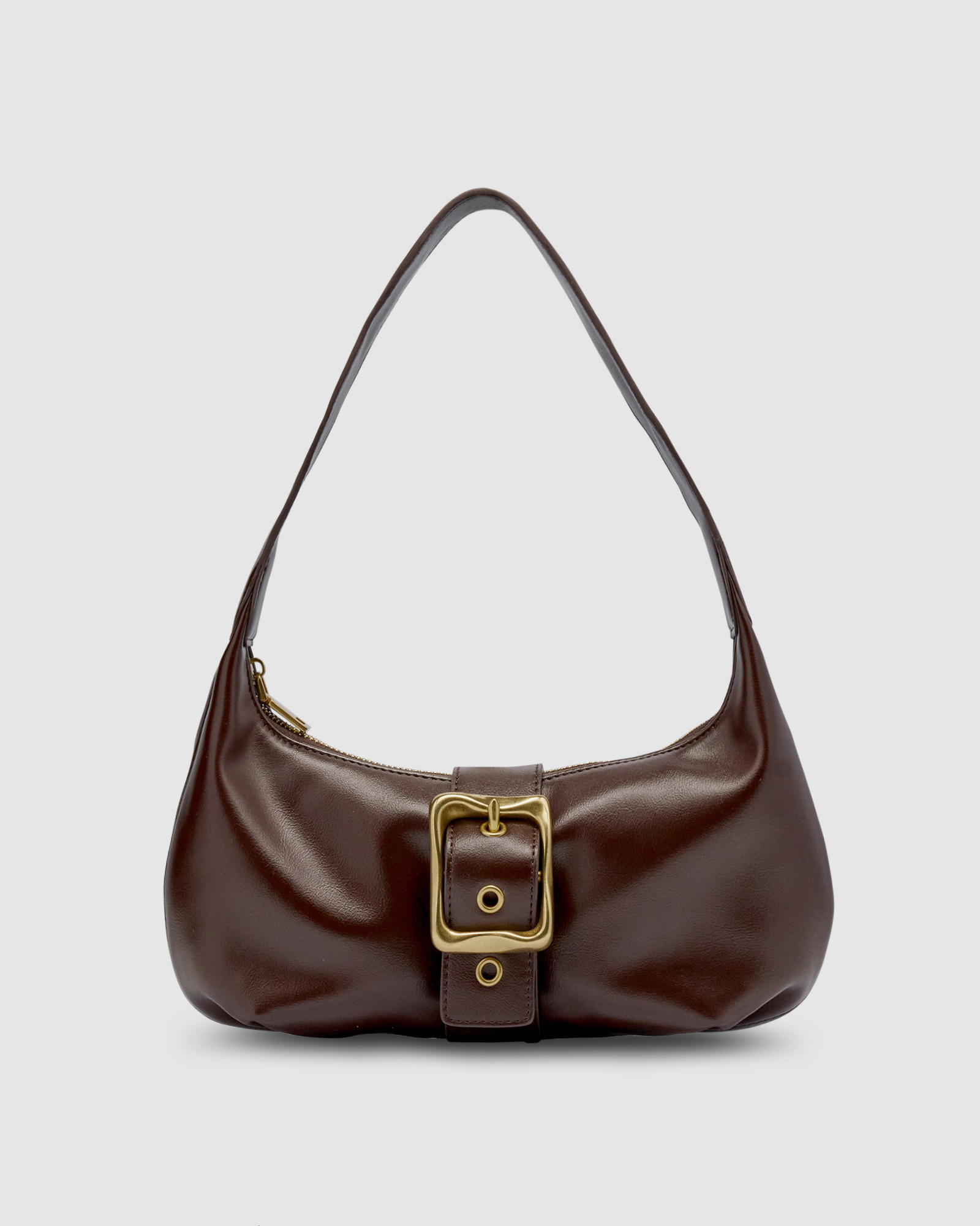 - Debossed Brie Leon logo hidden beneath buckle