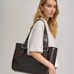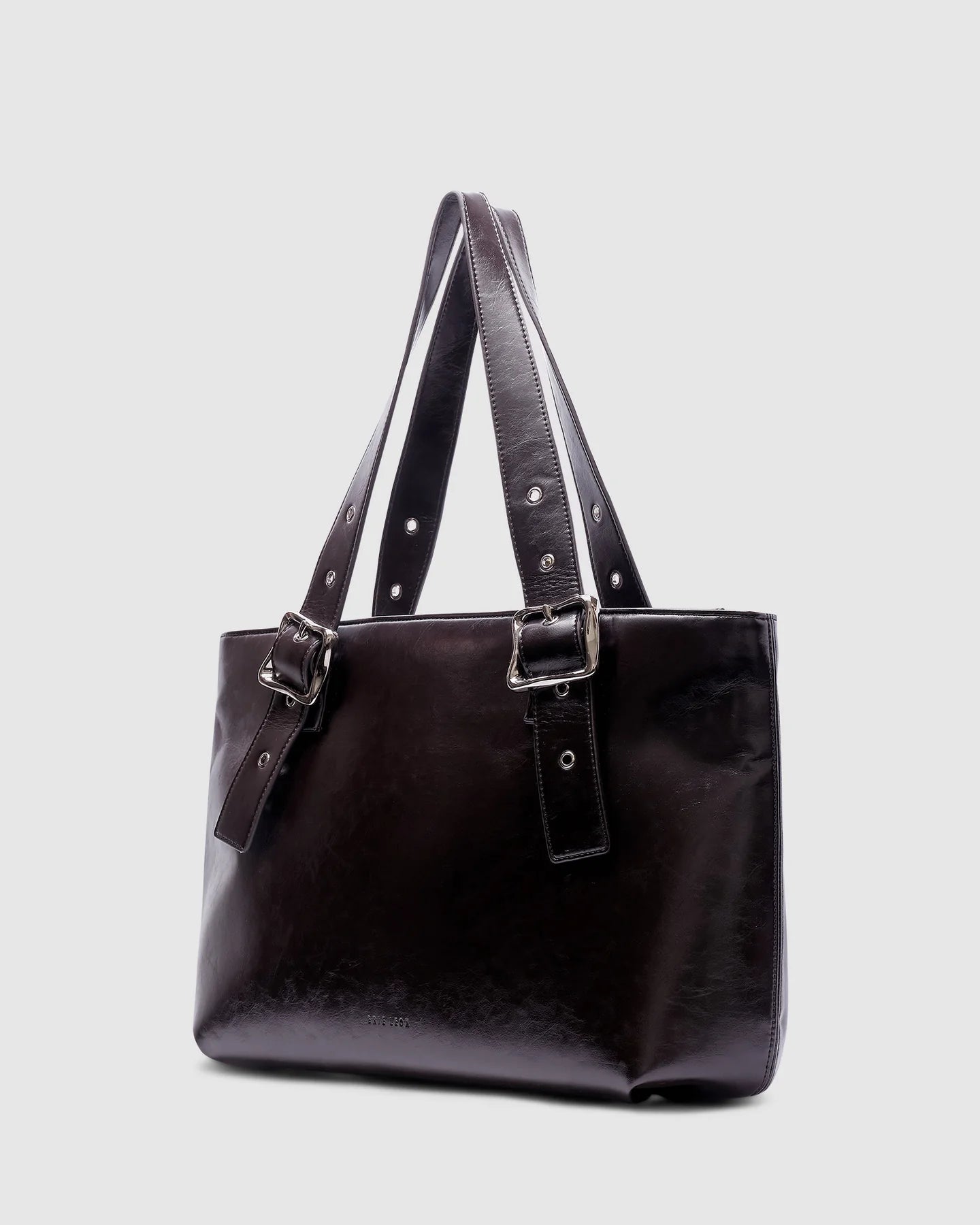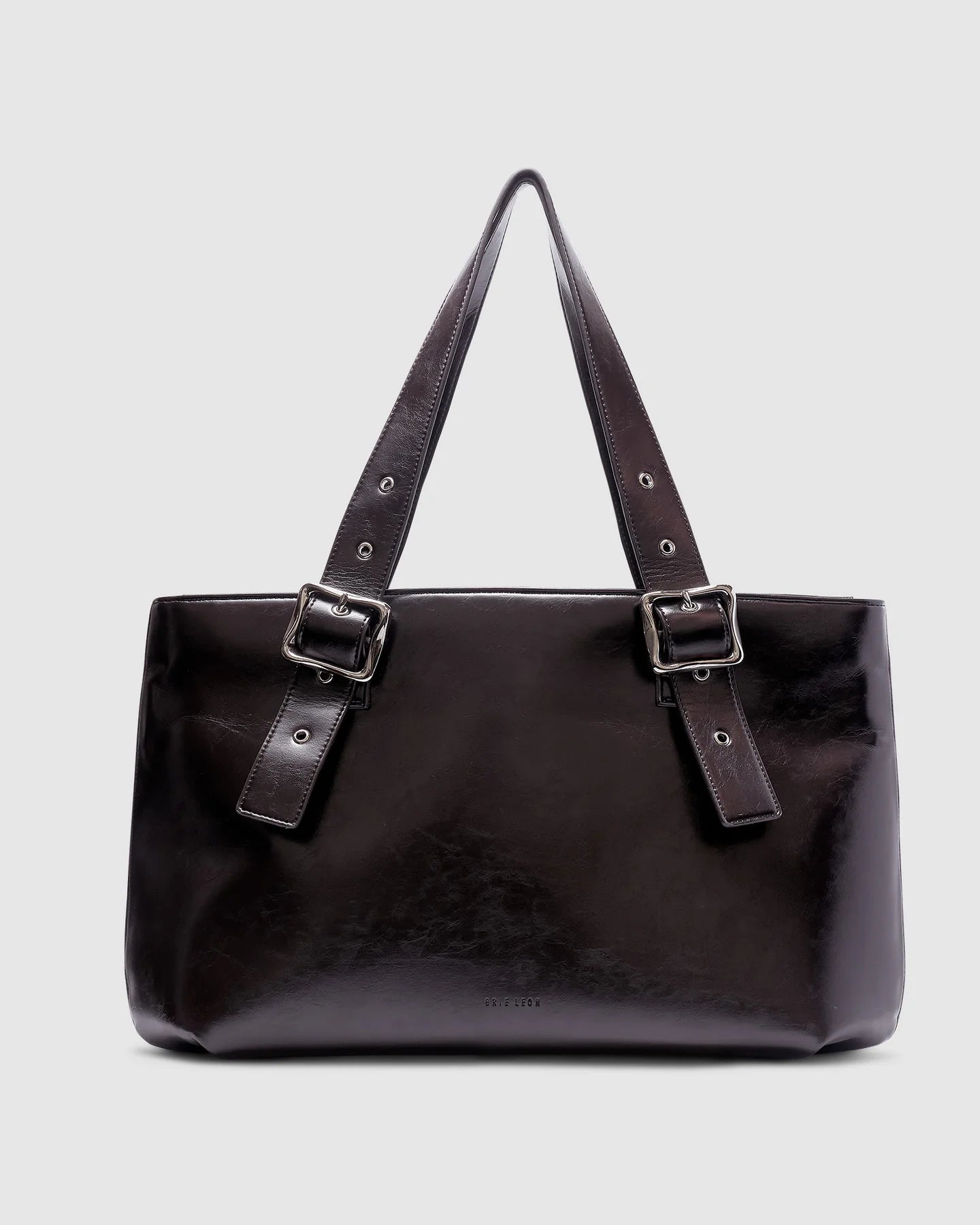 Minimal yet impactful, the East-West Weekender in Burnt Coffee is a structured carryall designed for the journey; whether that's your weekday commute or a weekend away. Crafted from smooth recycled PU and detailed with bold rolled silver buckles, its clean lines and considered proportions bring subtle refinement to everyday function.