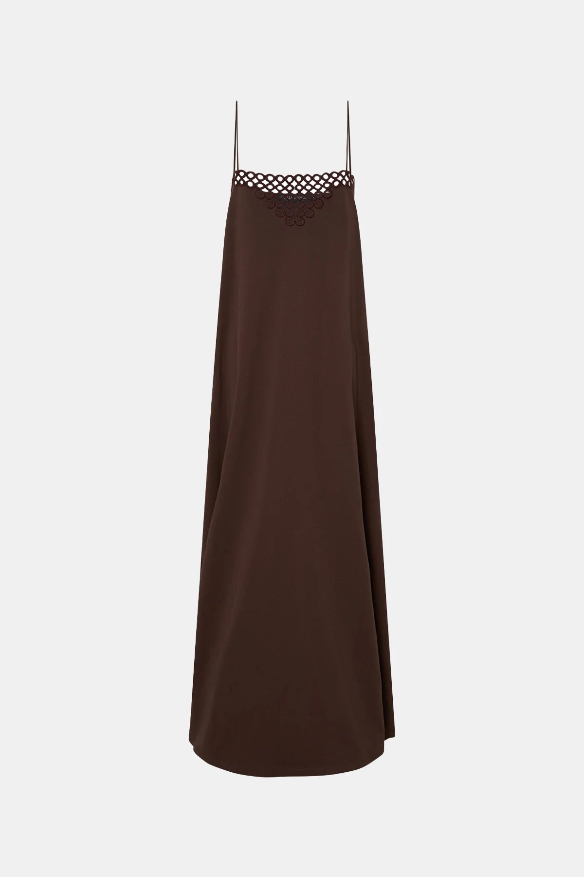 The Lolani Maxi Dress is crafted from lightweight cotton in a maxi silhouette. This dress features an embroidered circle detailing with thin adjustable straps.