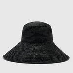 CAMILLA AND MARC Oasis woven wide brim straw hat in black raffia. Monogram logo at centre back.