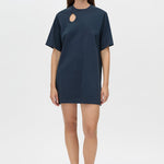 CAMILLA AND MARC Pablo navy mini t-shirt dress with asymmetric cut out at neckline.