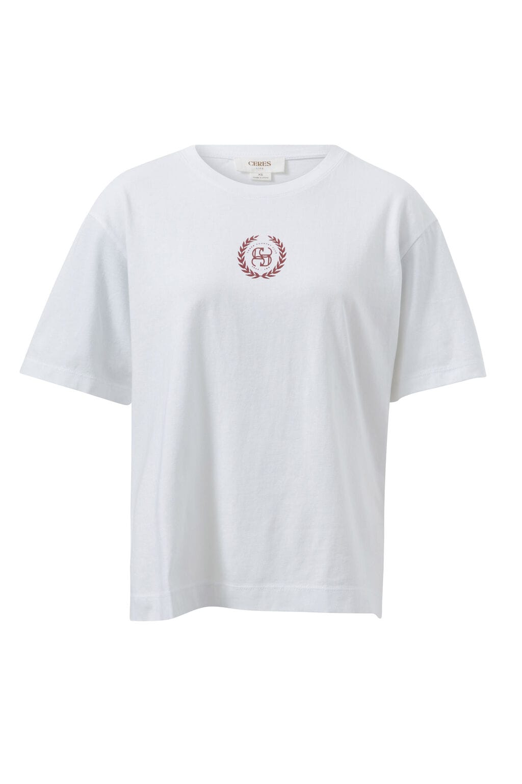 Ceres Life Slouchy Split Hem Tee | White/Burgandy Country Club Logo