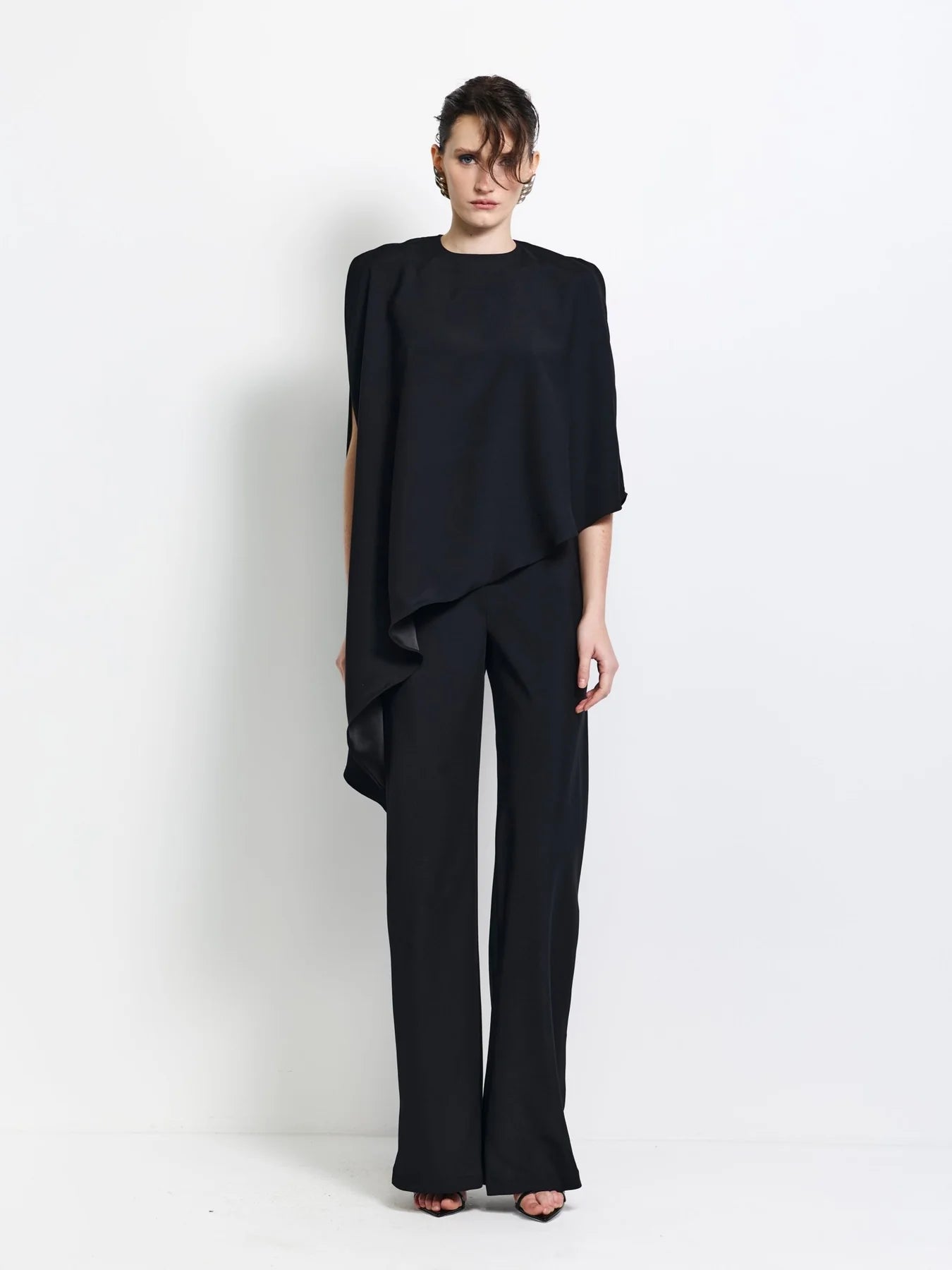 Crafted from a luxurious crepe satin, we welcome the Era Top. Designed with elegance and subtle luxury in mind, Era falls beautifully on the silhouette. Cut with an open sleeve detail at an asymmetrical hem, Era is perfect for all occasions for quiet glamour. Pair together with the matching Era pant for a beautiful and considered evening ensemble.