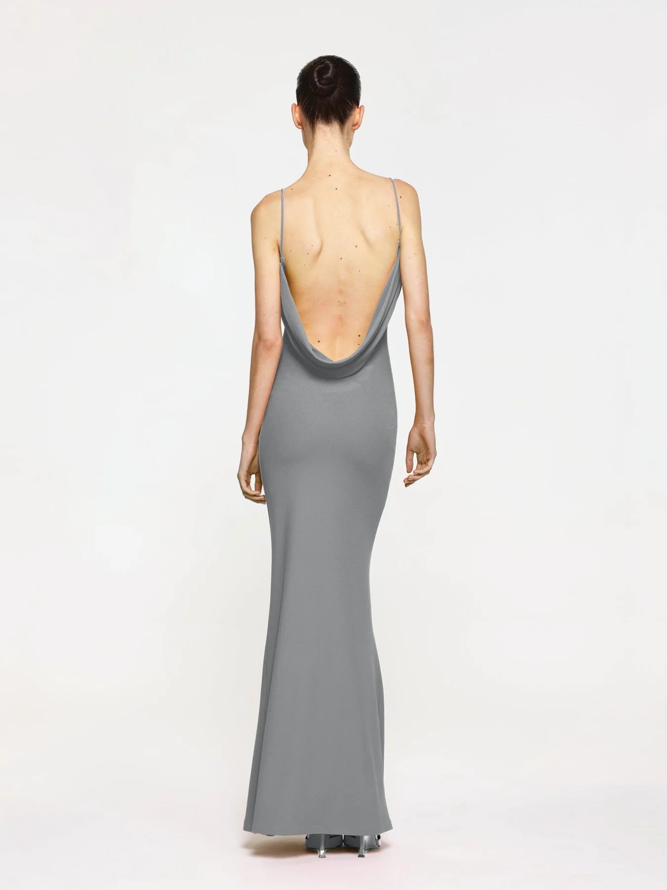 Introducing the Havilland Gown. Designed with a straight neckline and delicate detailing across the bodice for understated elegance. The gown features a deep low back with a special drape for the most flattering silhouette. Made with our signature stretch crepe fabrication for a soft and buttery feel on the body. Our Havilland Gown is fully lined and perfect for all occasions, from evening nights out to your next special event.