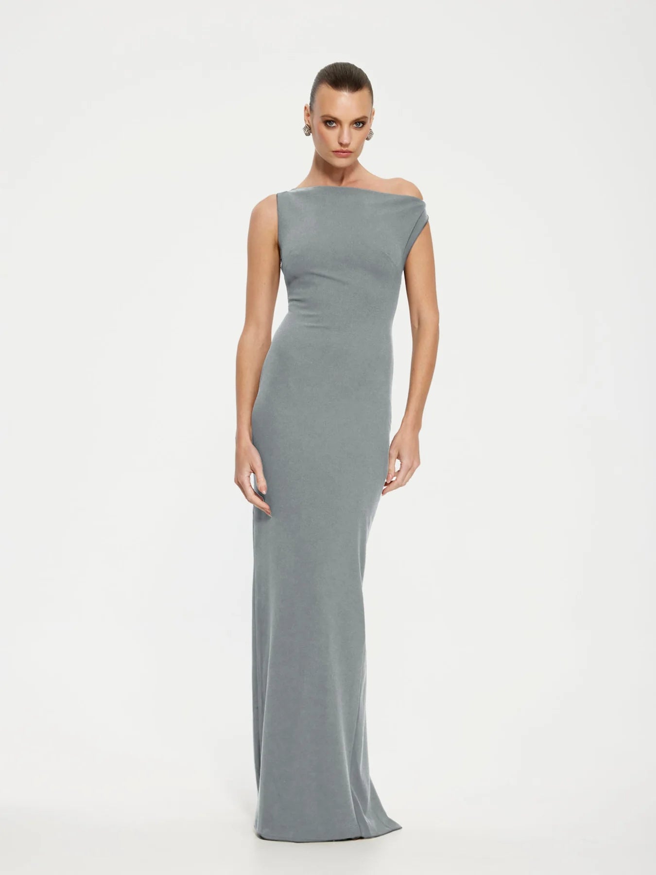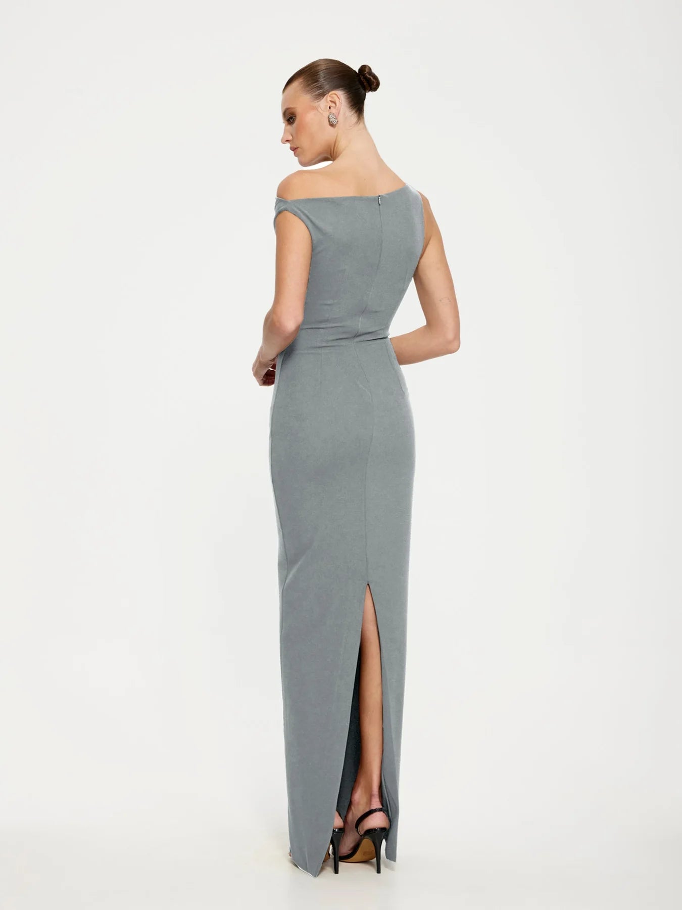 Meet the Inaya Gown, a contemporary silhouette designed for the modern day woman. Crafted with our signature crepe fabrication for the most flattering fit and silhouette on the body. Inaya features a slight off shoulder neckline, accented with a back split for ease of movement and comfort.