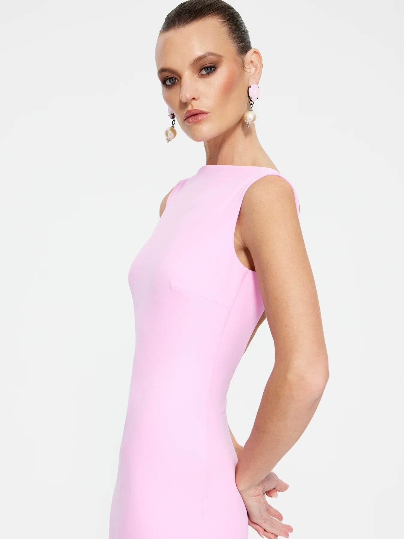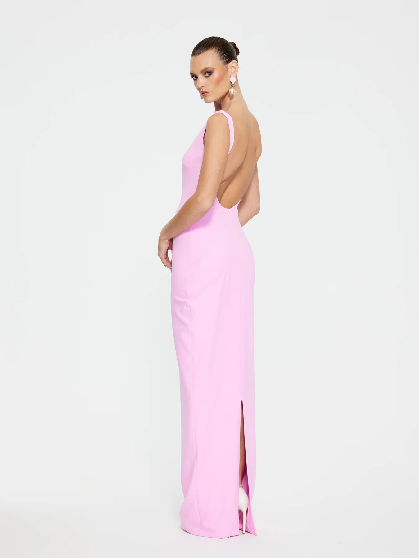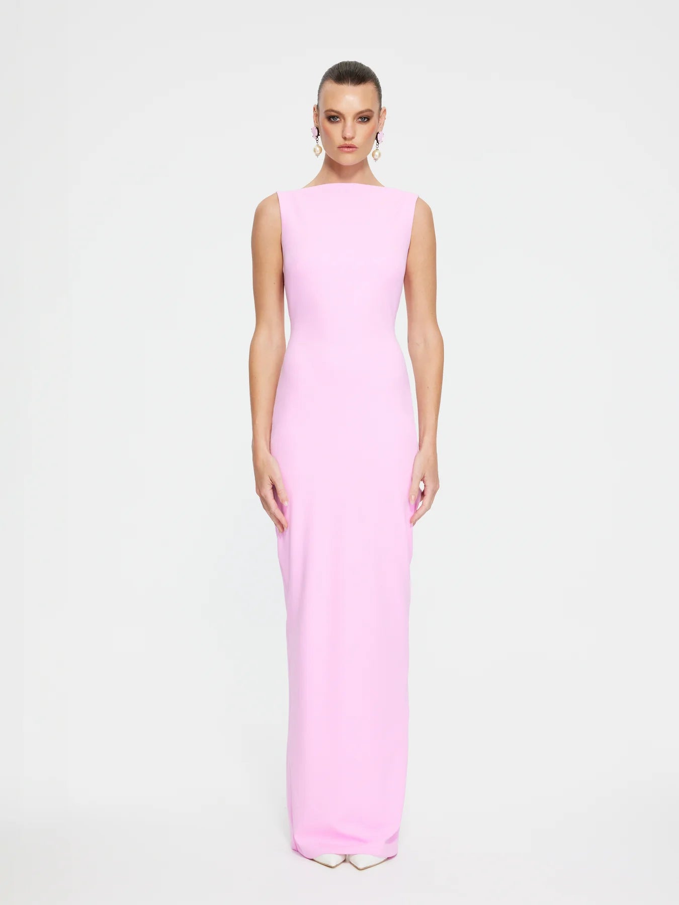 Welcoming one our core styles, the Verona Gown. Featuring a beautiful high straight neckline that falls into a low back and cut with a slight split at the back. Crafted from our luxurious stretch crepe that hugs the figure for the most beautiful cinched silhouette.