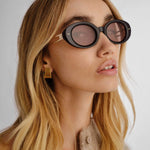 The Avalon is a medium-sized oval frame which features a unique gold split temple design. This chic vintage meets modern frame perfectly flatters the face with its soft edges and mix of both acetate and metal. Featuring our signature organic rivets on the front frame and embossed organic L on both temples these sunglasses will make you feel elevated everyday.