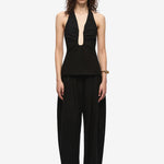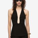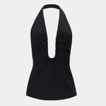 The 'Alusia' Top in Black, features a plunging teardrop neckline.