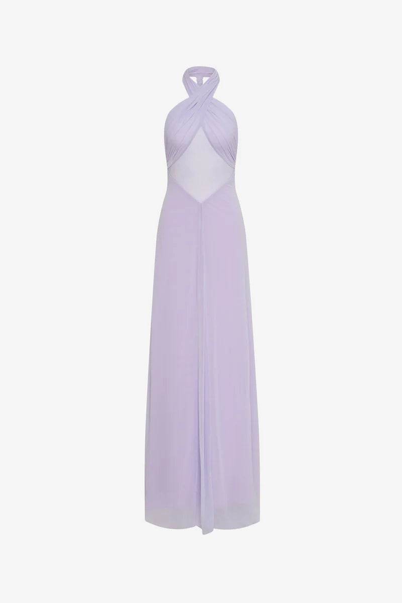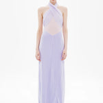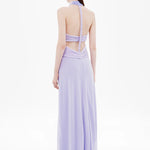 The Pippa Braid Dress features a halter neckline with a refined cross over detail. A sheer panel at the midsection adds subtle allure, while the soft stocking jersey fabrication offers a fluid, second-skin fit that moves. The braided plait back detail draws the eye, creating a sculptural drape that flatters from every angle.