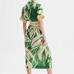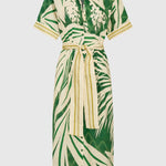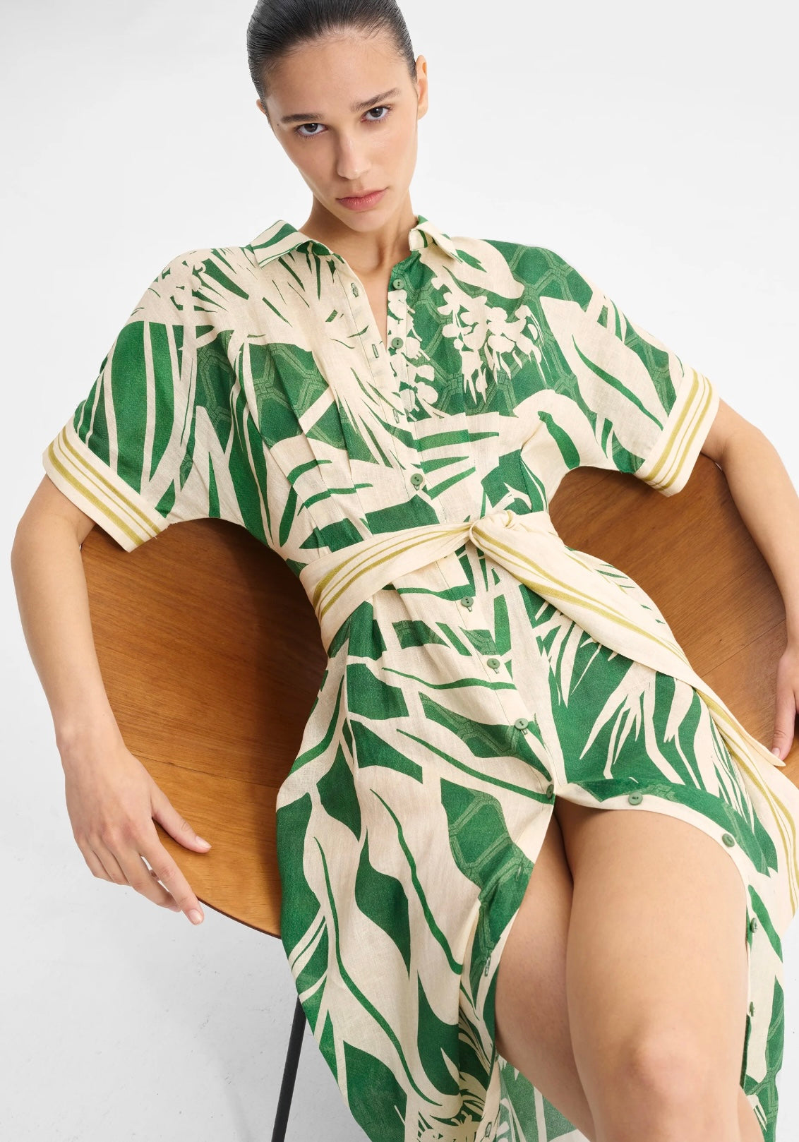 The Sorrento Linen Shirt Dress showcases Morrison’s exclusive linen print, cut with a collared neckline, dolman sleeves, and a button-through front. Designed with waist tucks and a straight midi skirt, it’s finished with a border-printed waist tie and cuffs for a refined touch.