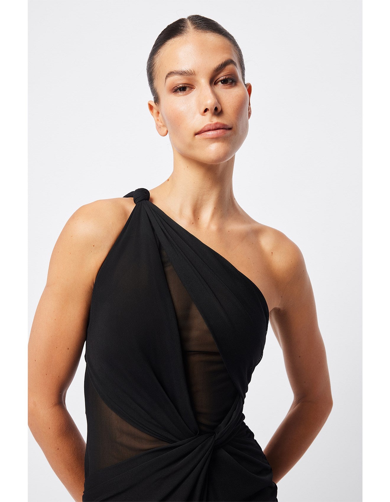 - One shoulder neckline with knot shoulder detailing