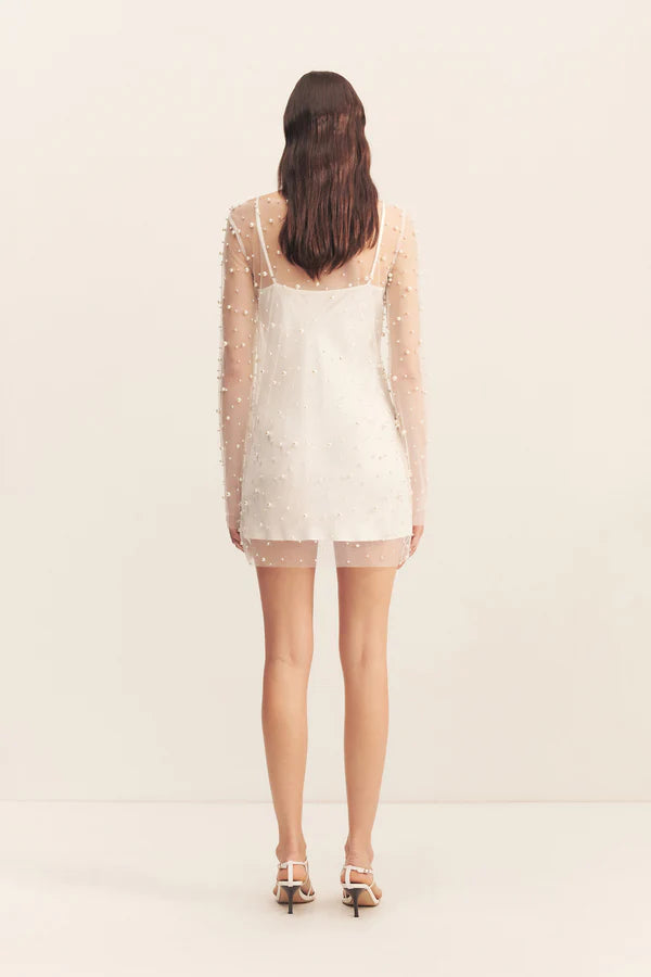 Shona Joy Opaline Sheer Pearl Mini Dress | Ivory
