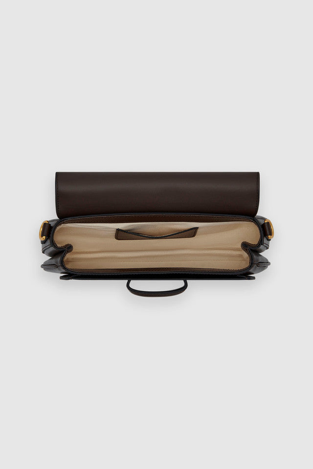 The Mica Bowler combines smooth and pebble leather with brass hardware for a refined finish. It features a two-way zip closure, spacious main compartment, external and internal pockets, and durable canvas lining. Complete with a removable top handle and adjustable crossbody strap for versatile elegance.