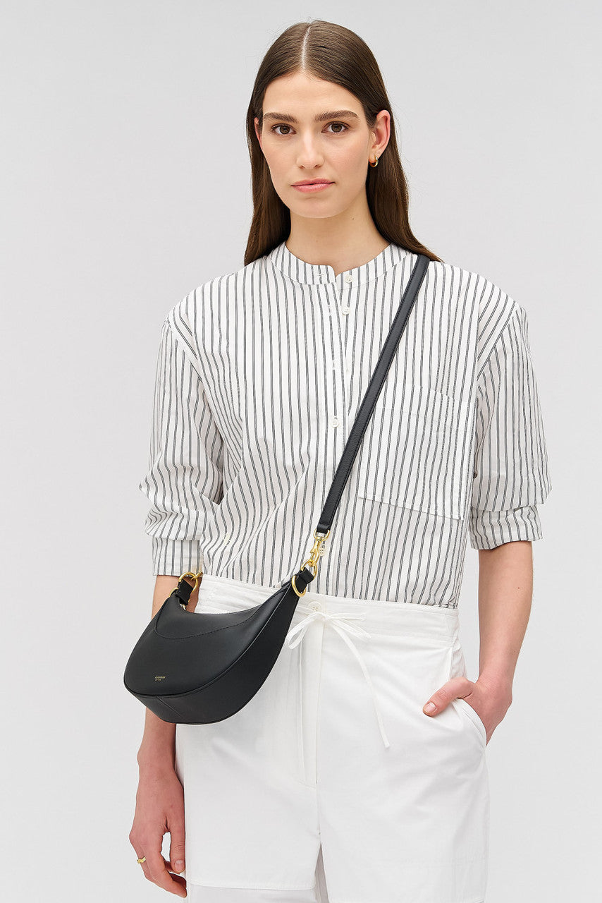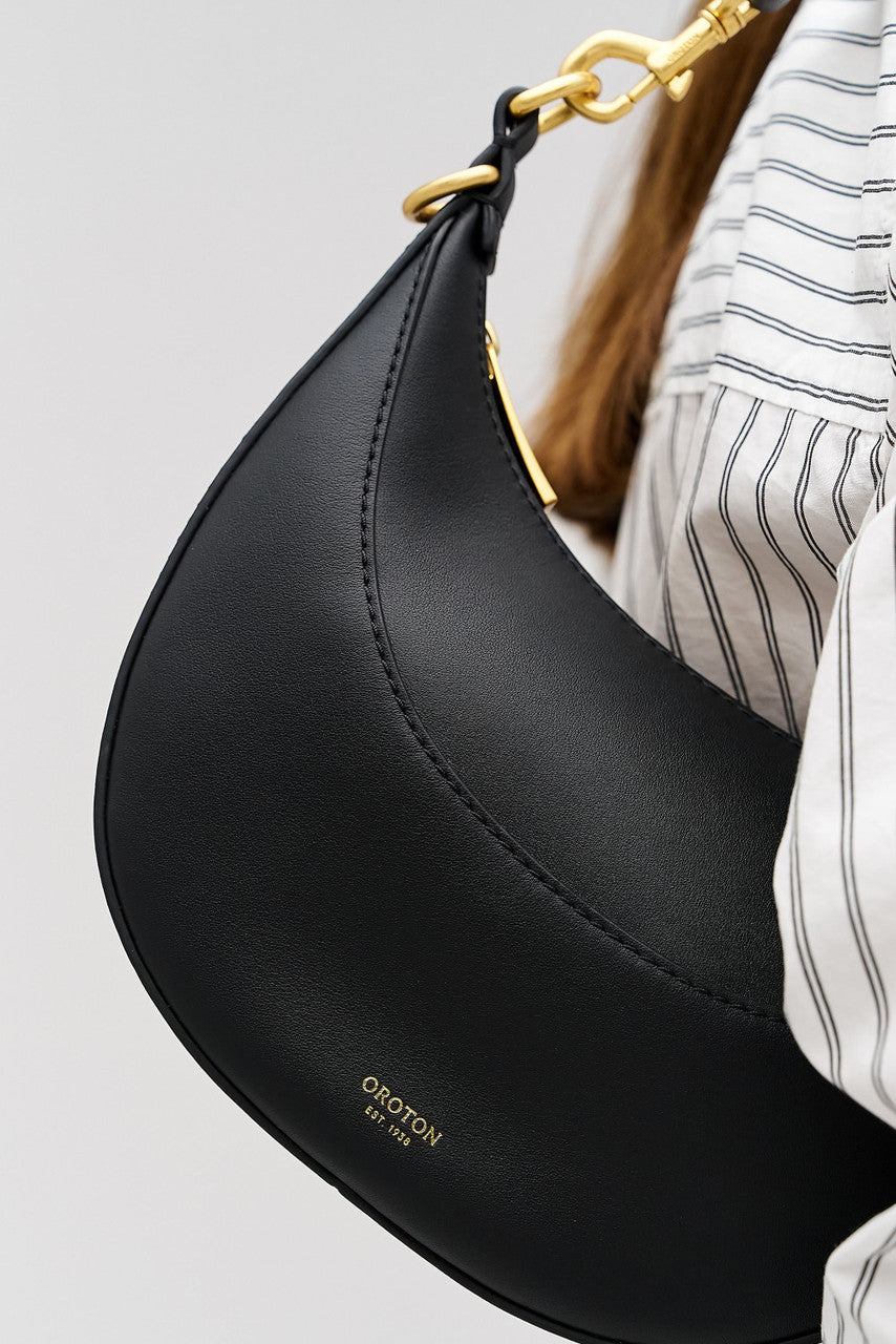 The Florence Small Shoulder Bag combines refined luxury with practical design. Crafted from smooth leather, it features a top zip closure, spacious compartment, and versatile straps. Perfect for day-to-night transitions, it embodies timeless Oroton elegance.
