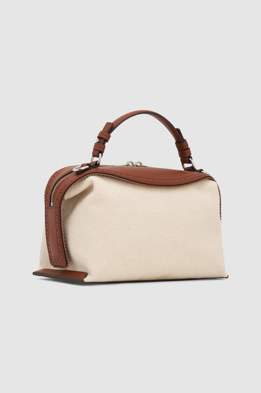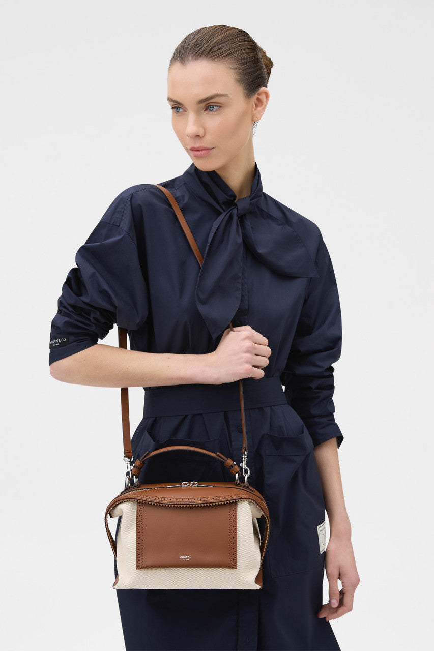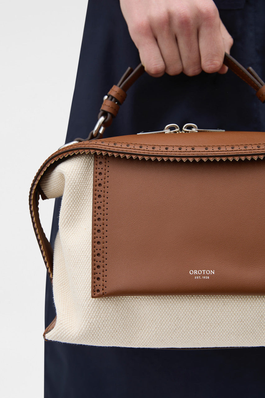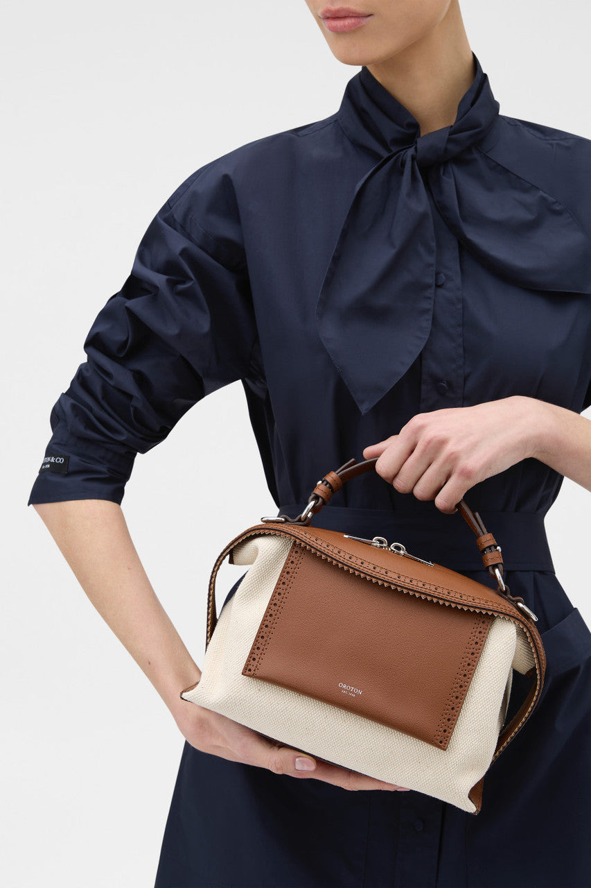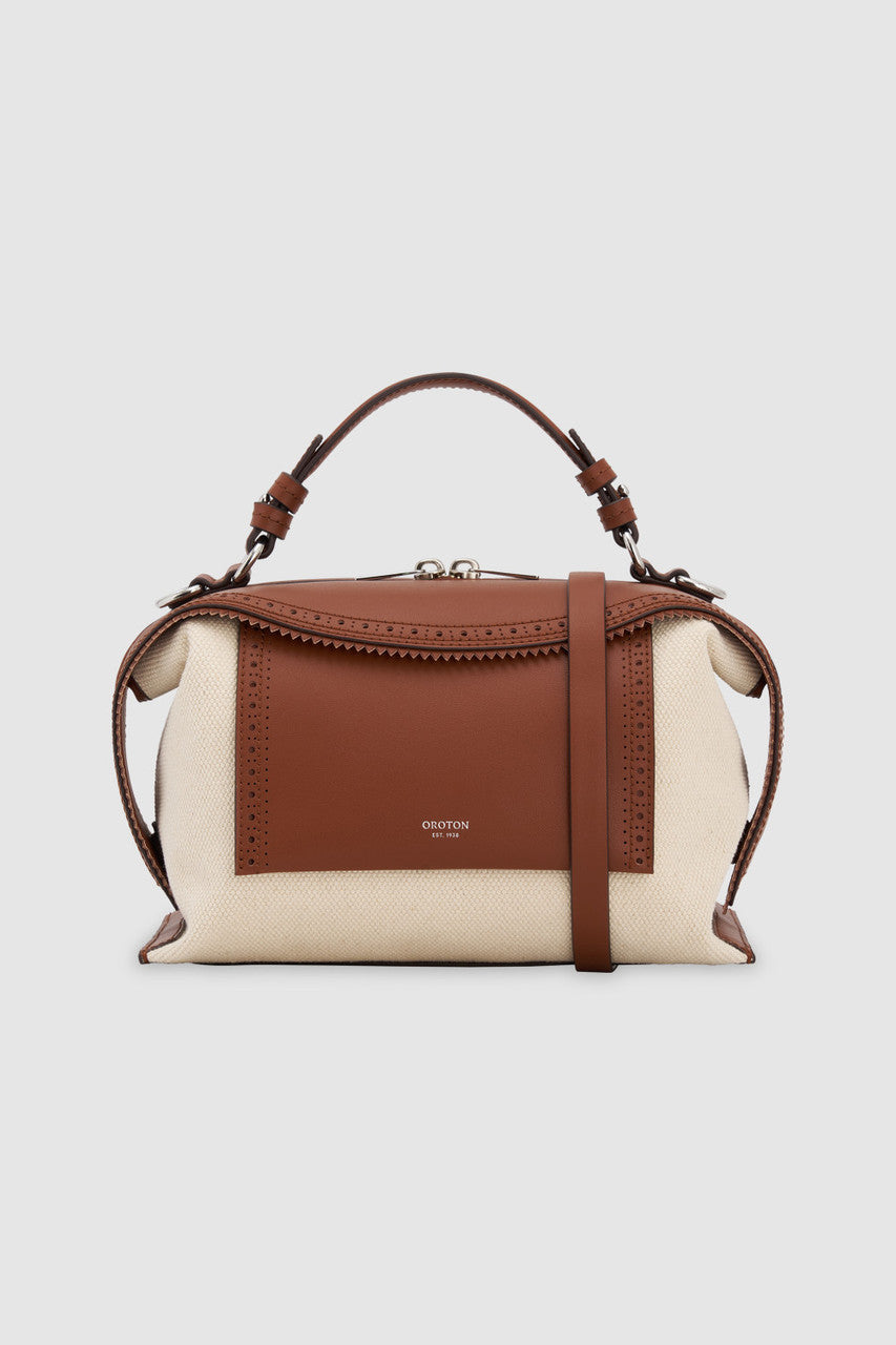 Oroton Mica Bowler Canvas Broguing | Natural/Penny Brown