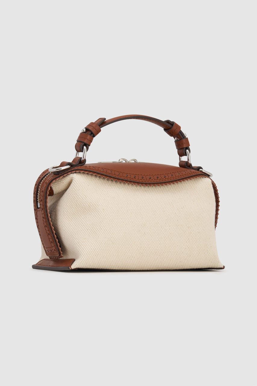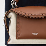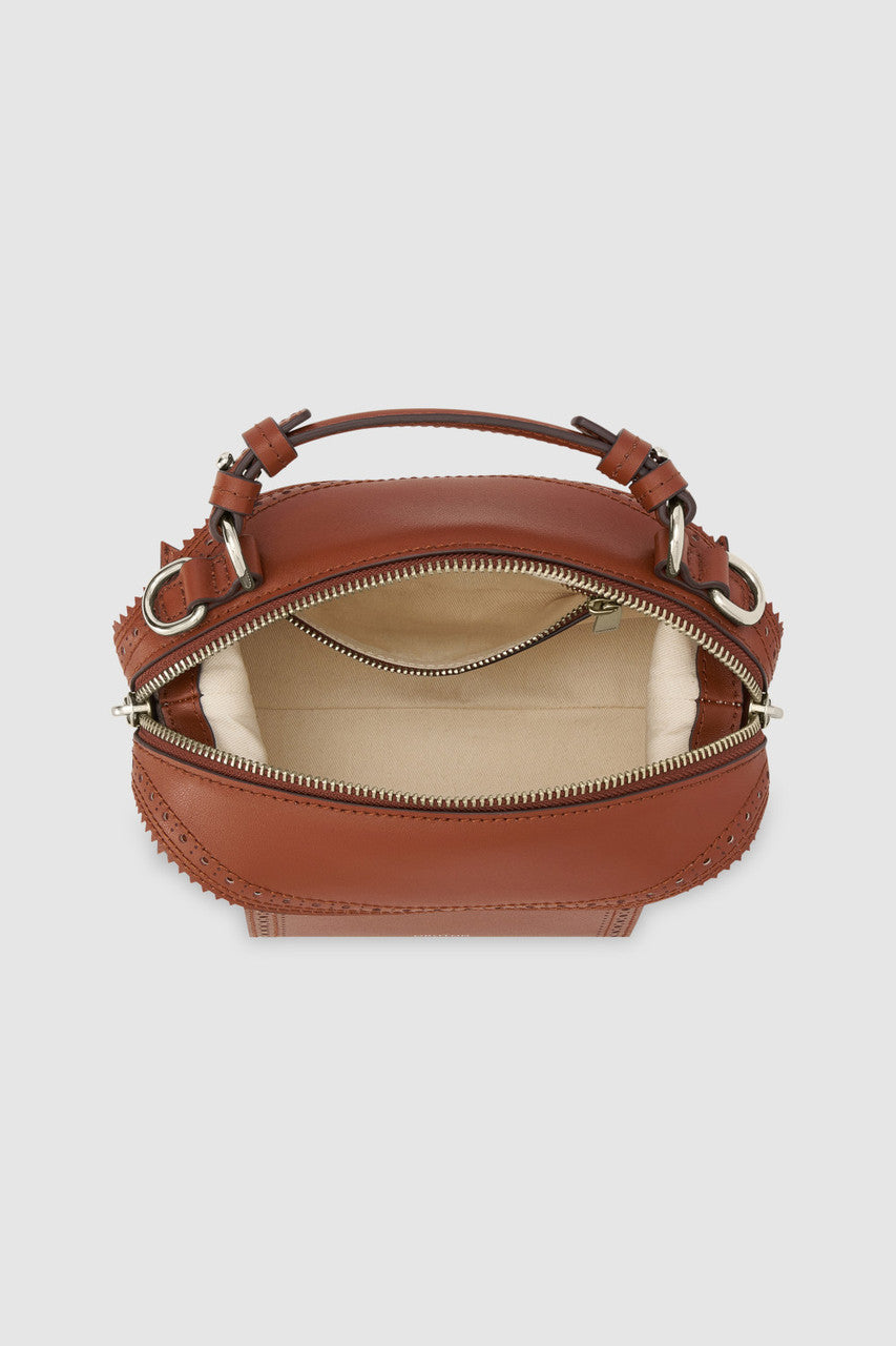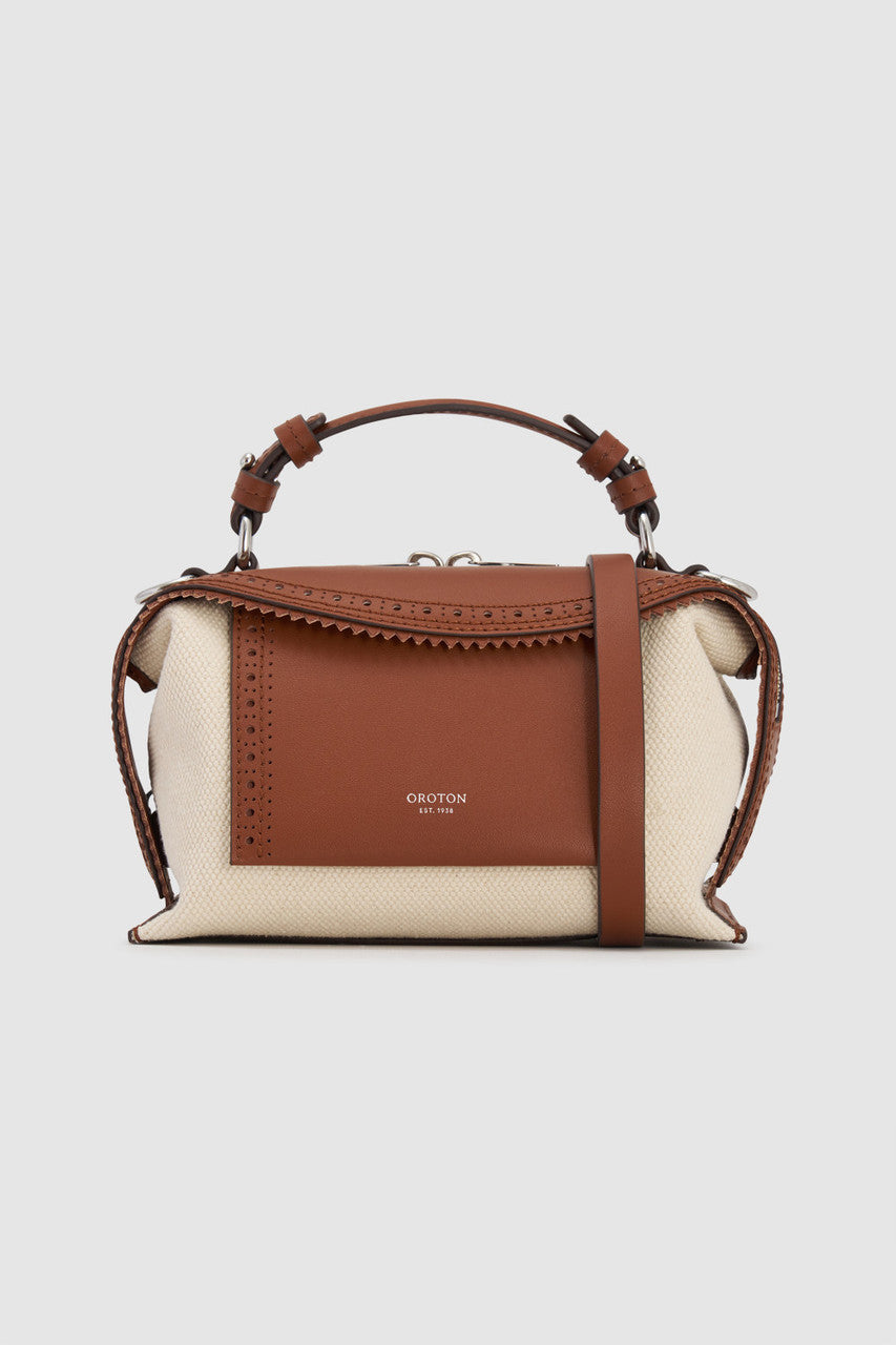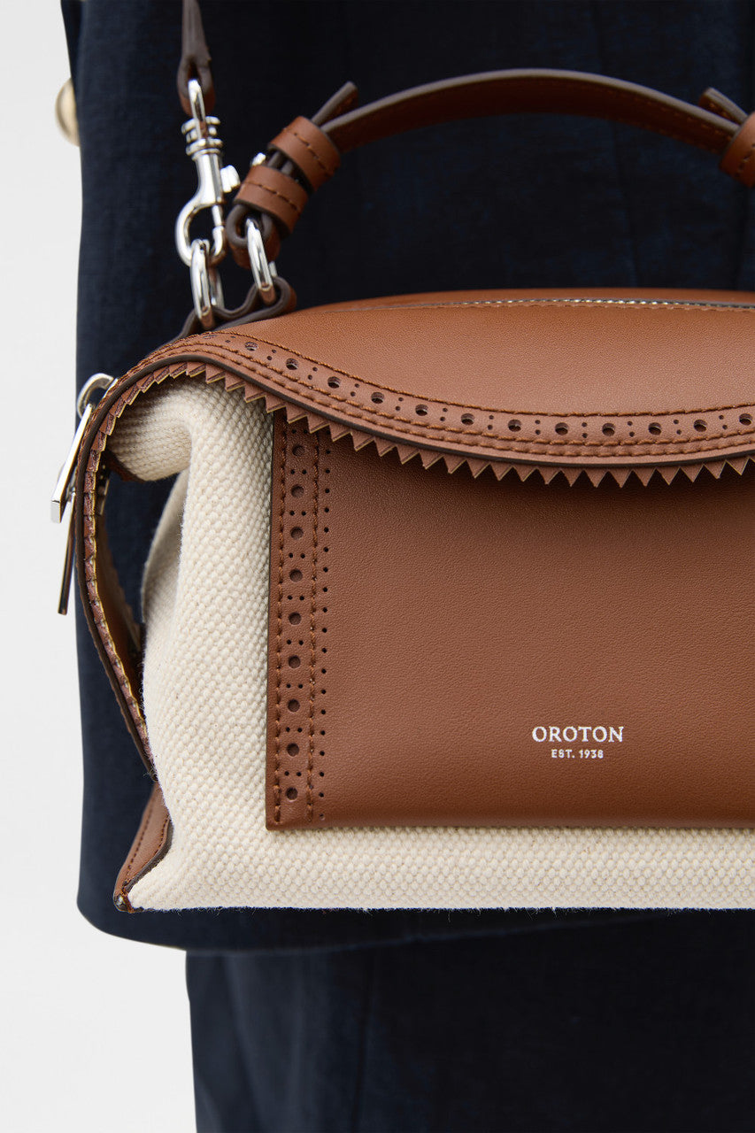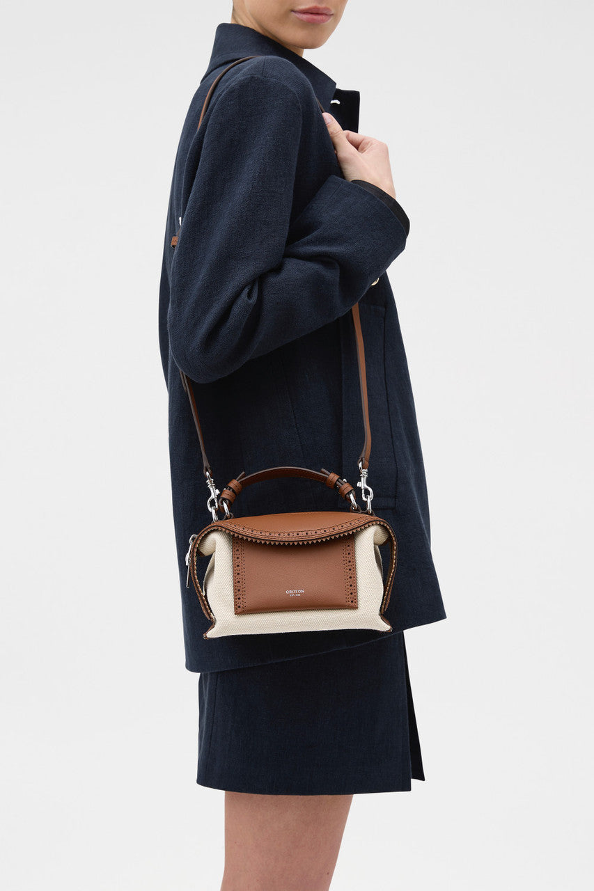 Oroton Mica Mini Bowler Canvas Broguing | Natural/Penny Brown (PRE-ORDER)