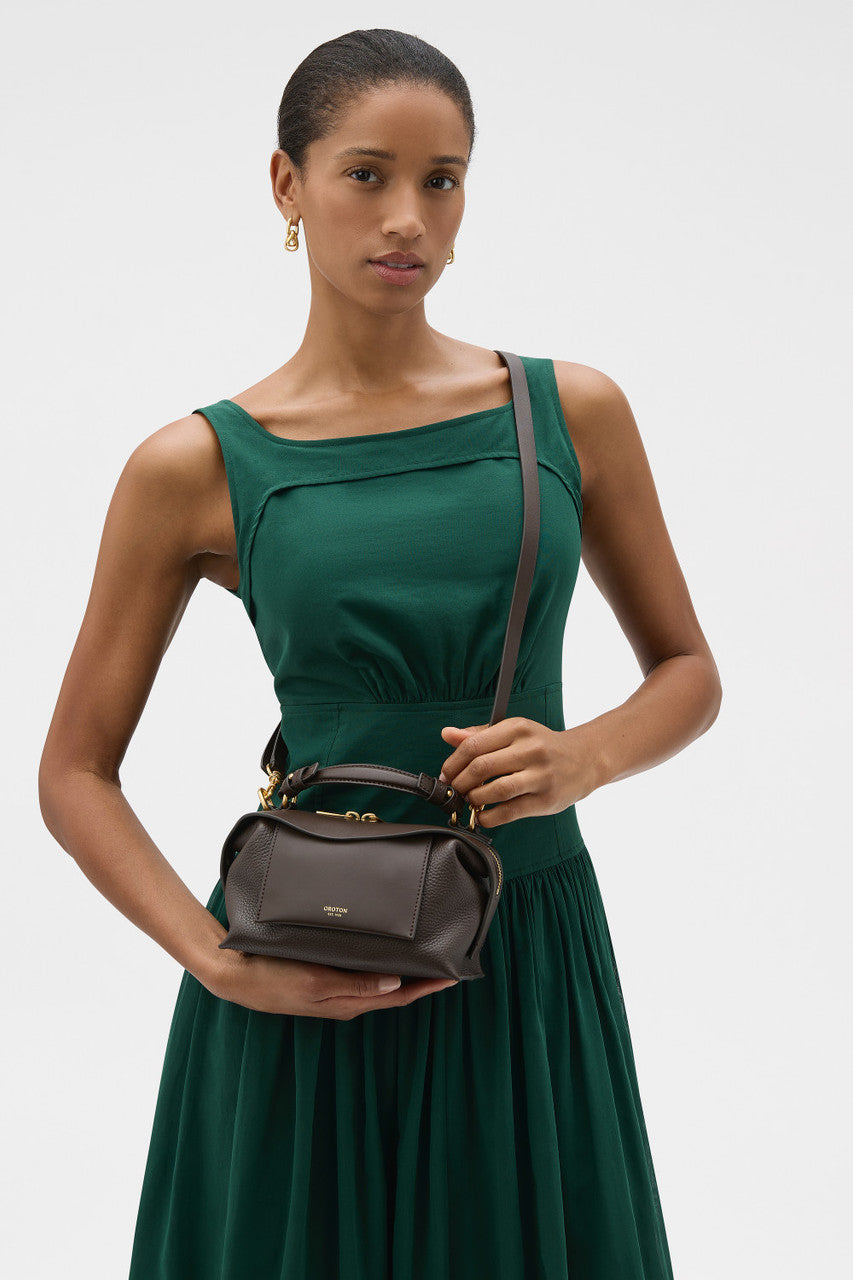 Oroton Mica Mini Bowler | Dark Chocolate