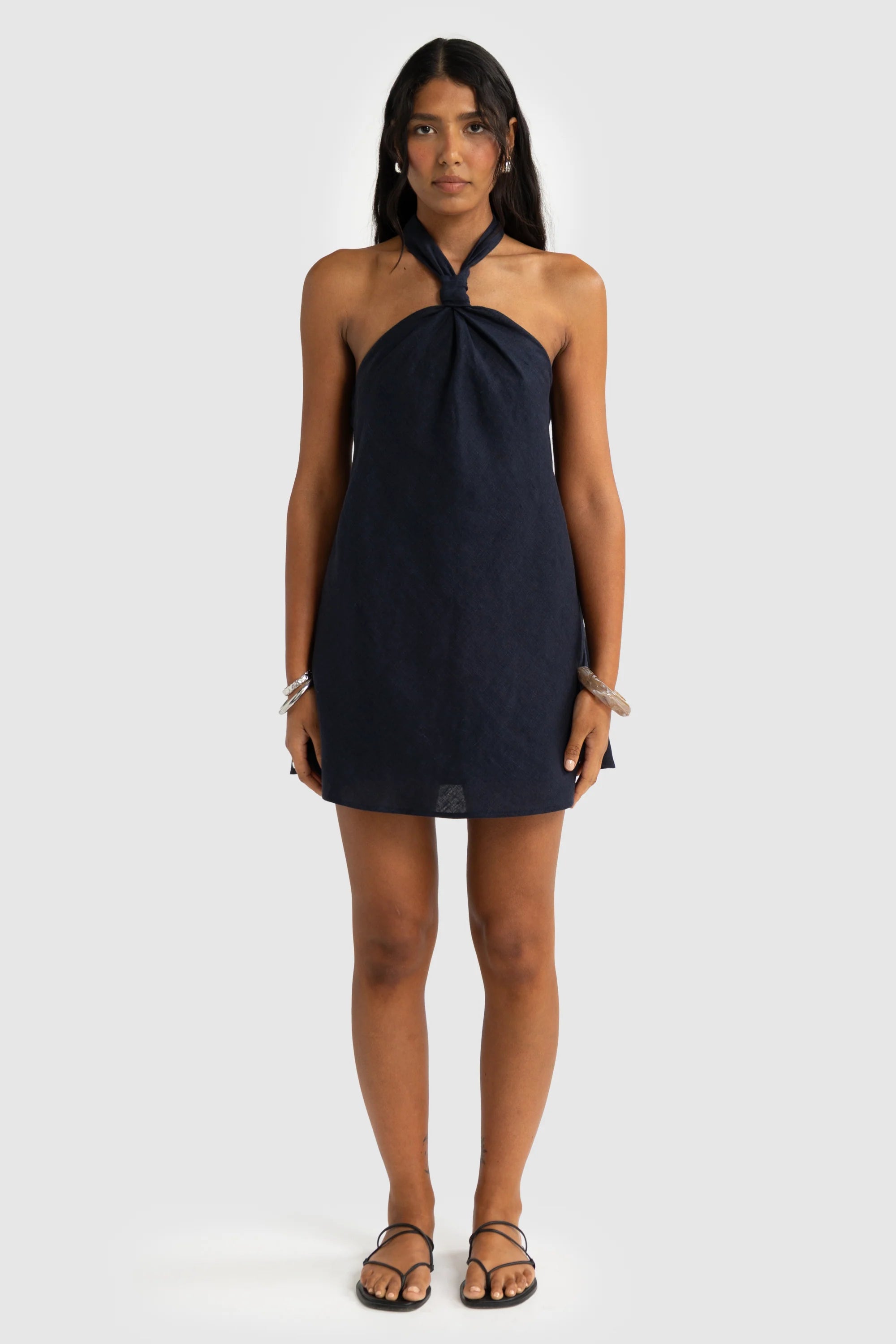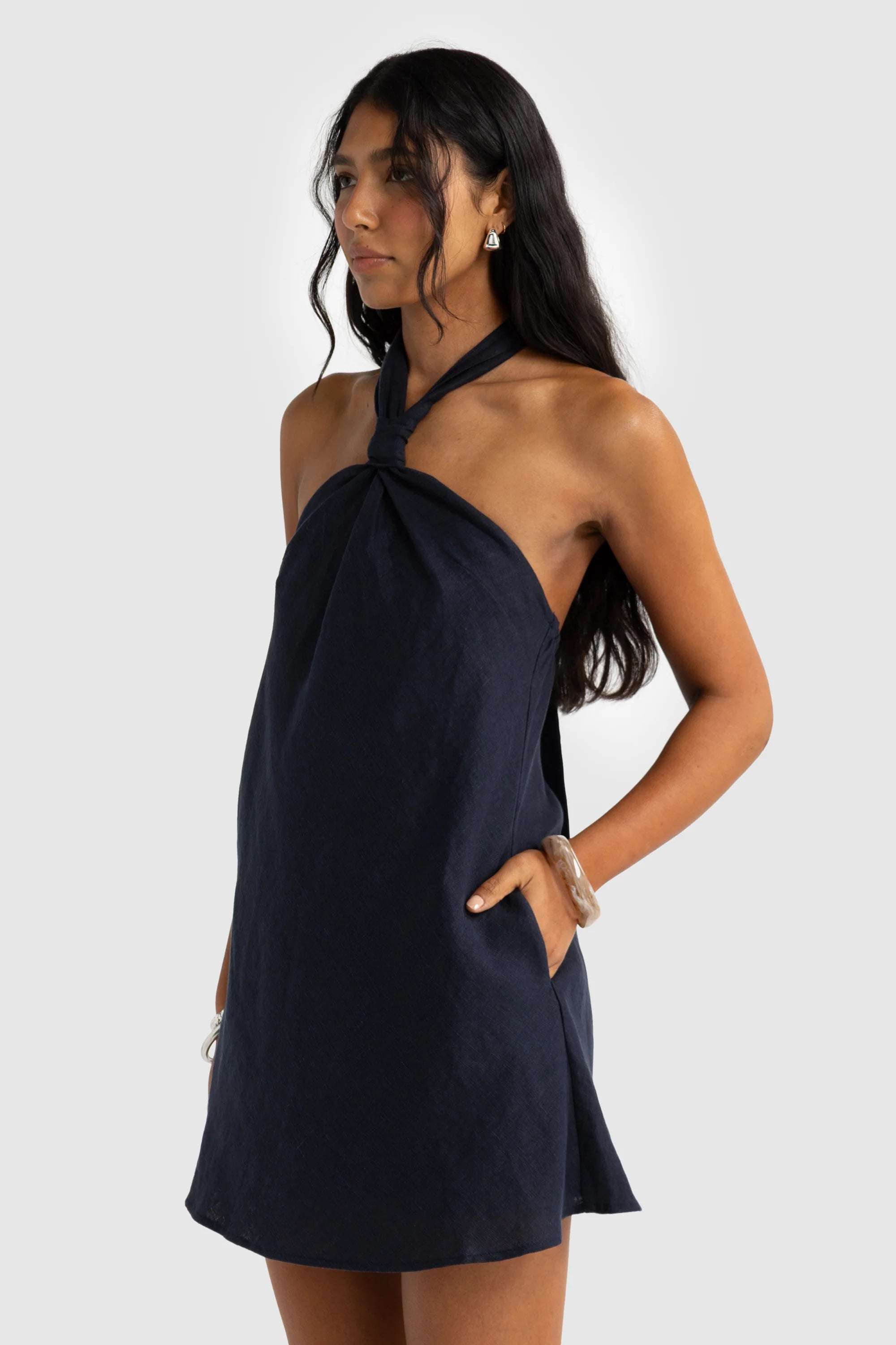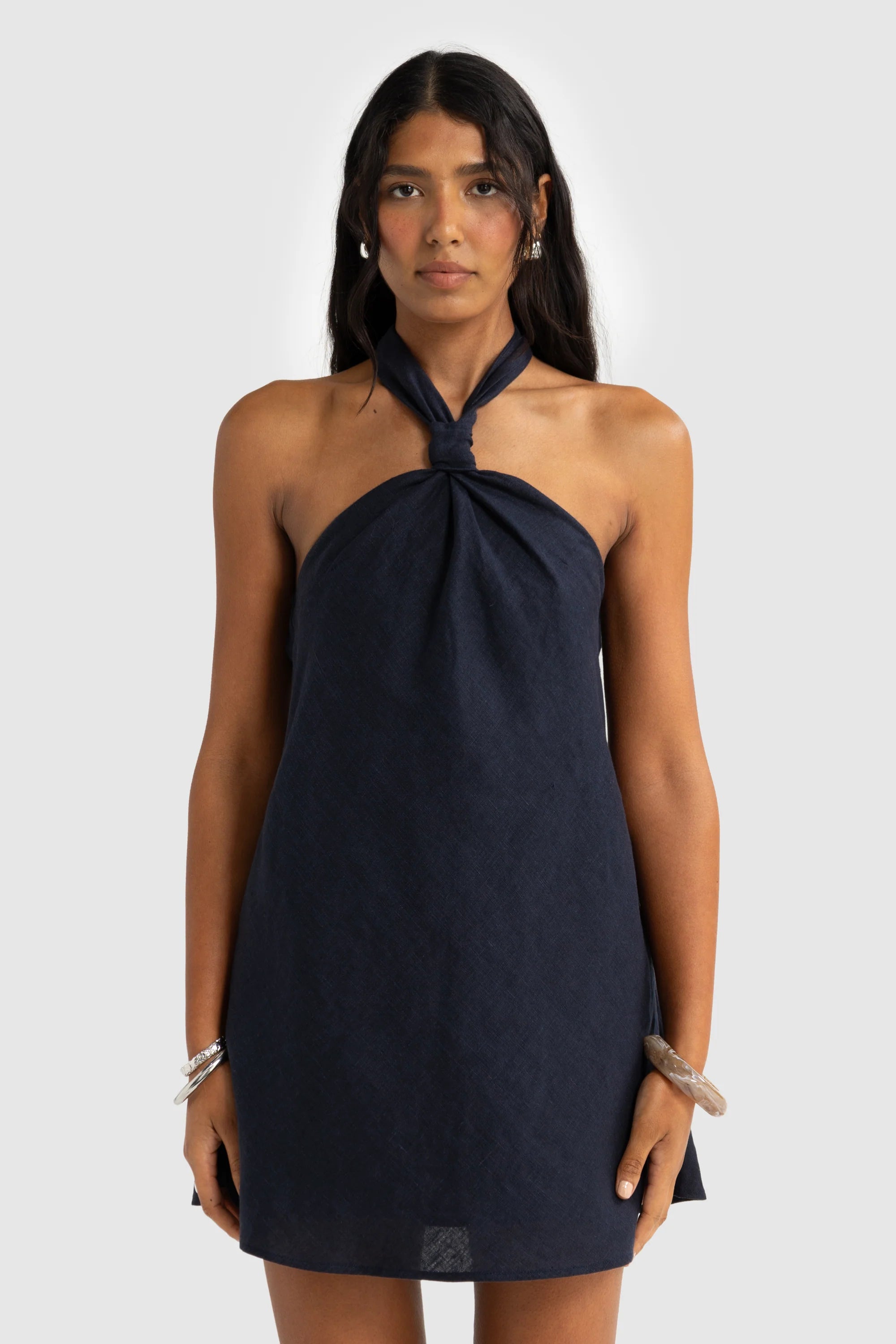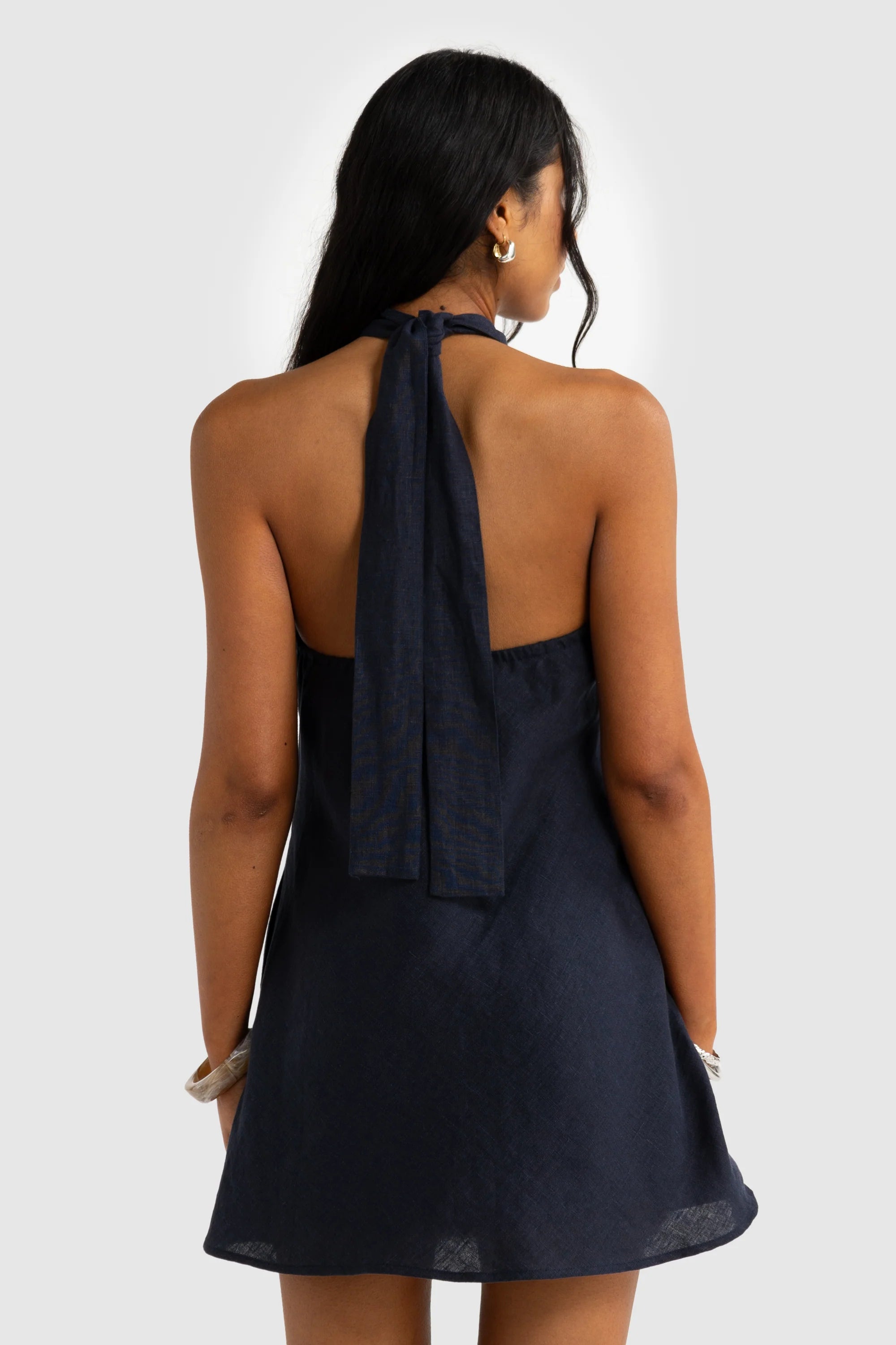 ORTC Mira Linen Halter Mini Dress | French Navy