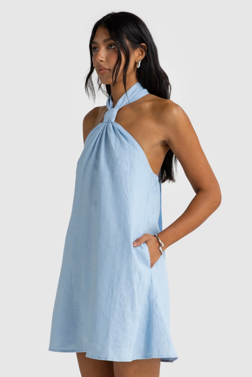ORTC Mira Linen Halter Mini Dress | Powder Blue (PRE-ORDER)