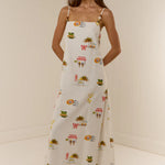 The Marla Dress is crafted from a premium linen, in our exclusive Wildflowers. A linen midi dress, based on our Carla Dress, featuring a point collar, puffed sleeves and buttons down the centre front, finished with a removable sash belt. We recommend purchasing your standard size. Please refer to our size and fit guide for further fit details.