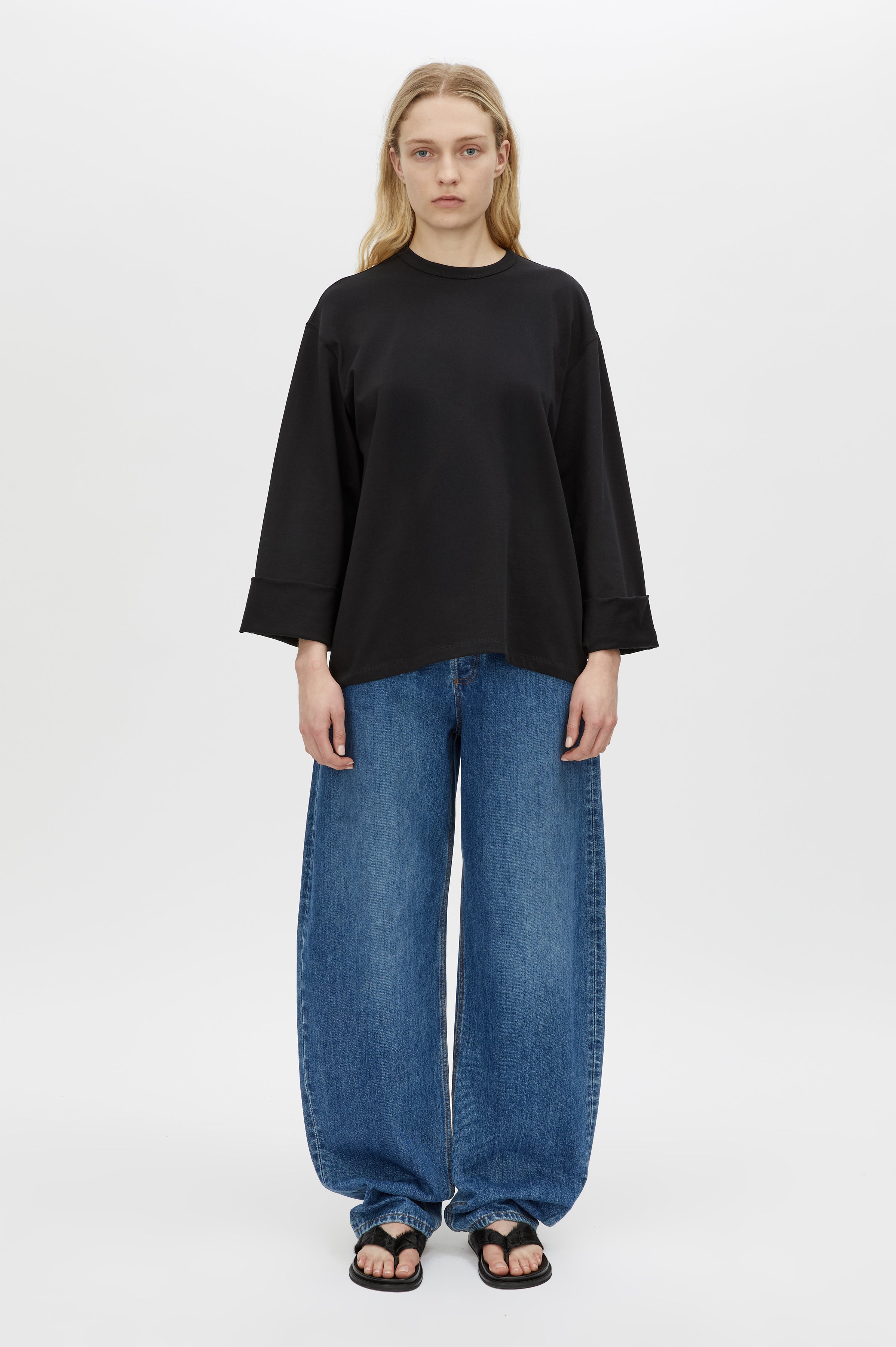 CAMILLA AND MARC Peretti long sleeve black tee with wide shaped sleeves. Ribbed neckline.