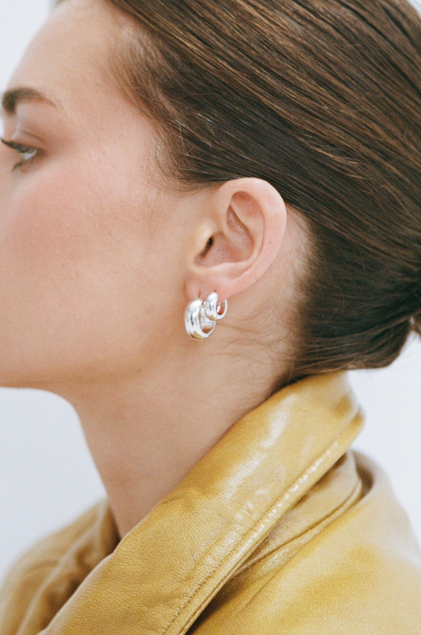 Our best-selling Petite Thick Huggies is now available in a smaller petite version. 8mm - Full circle with a full circular clasp. Featuring a glossy white gold plating with a sterling silver base. All our pieces are water-resistant, will never rust or turn green, and can be worn in the shower. Also available in a larger 18mm size
