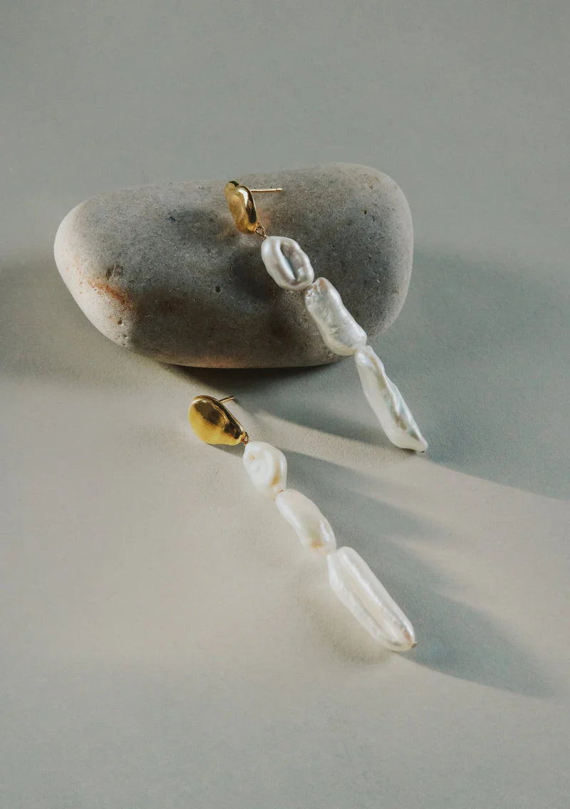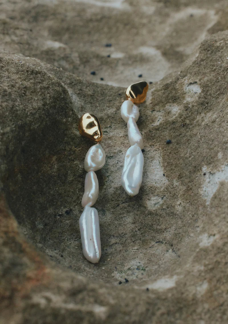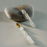 Designed and handcrafted in our Sydney studio from lustrous freshwater Keshi pearls and sculptural metalwork with asymmetrical forms cast in Sterling Silver with high quality gold plating.
