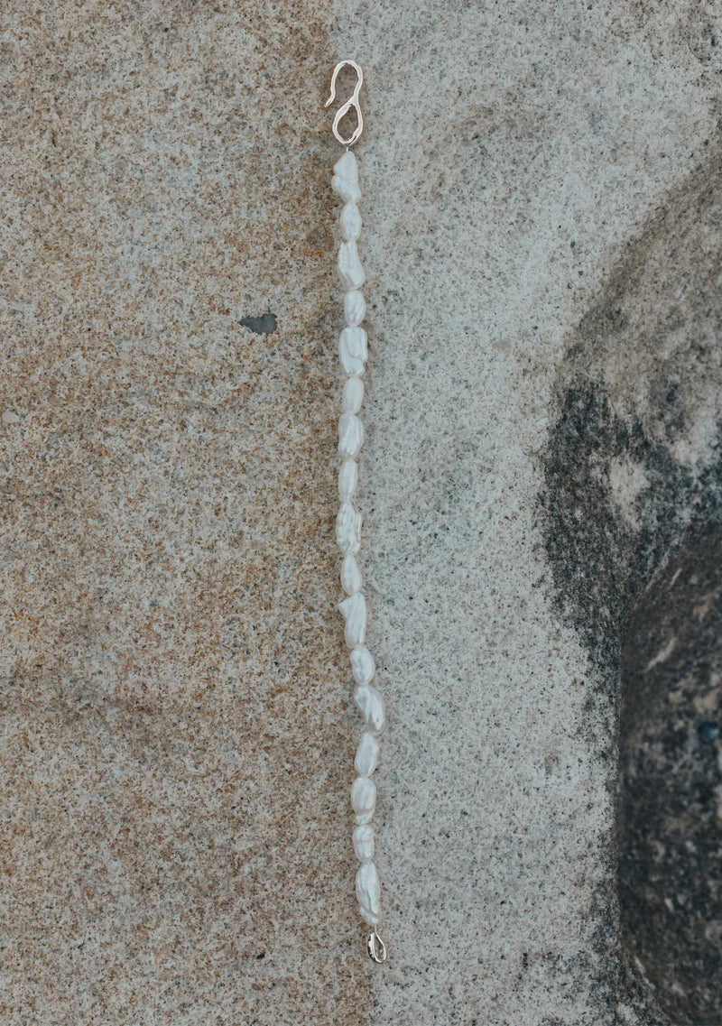Designed and handcrafted in our Sydney studio, the Cielo Bracelet features lustrous freshwater Keshi pearls and a sculptural clasp cast in Gold Vermeil.