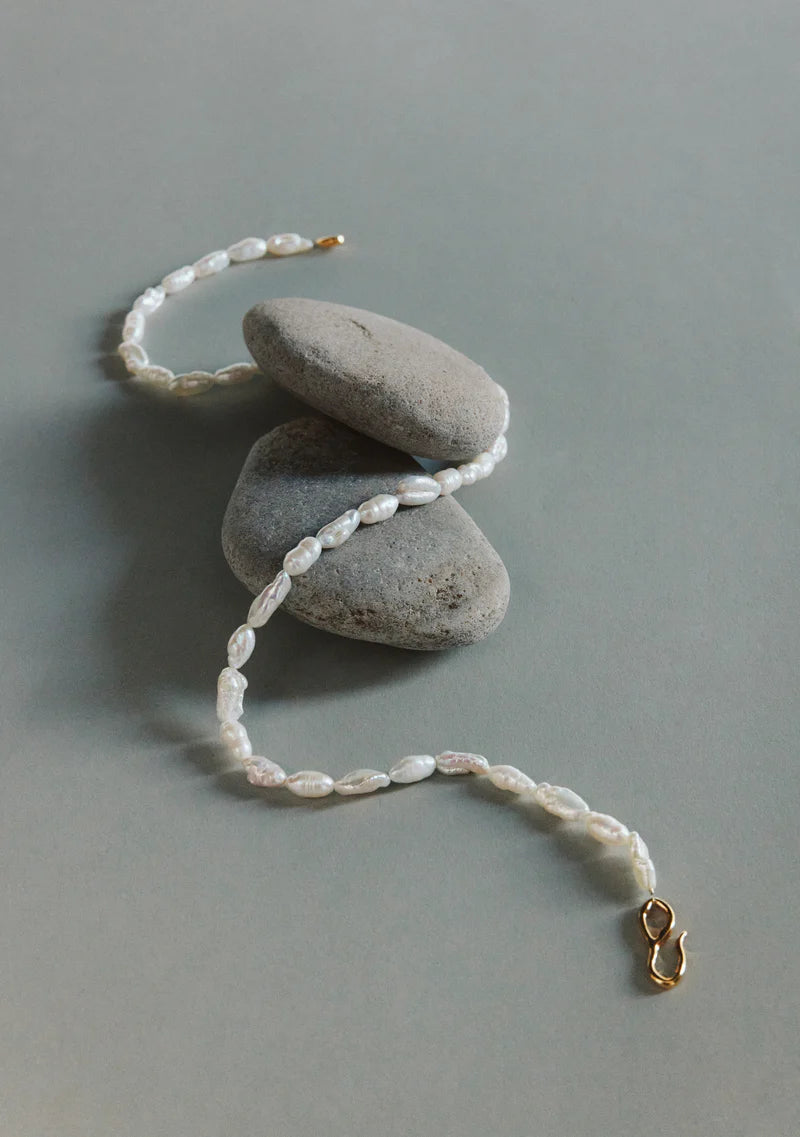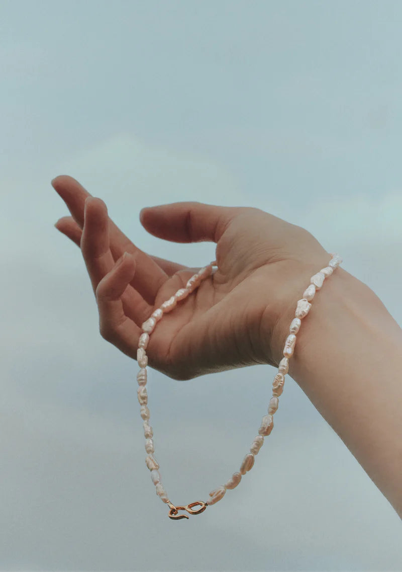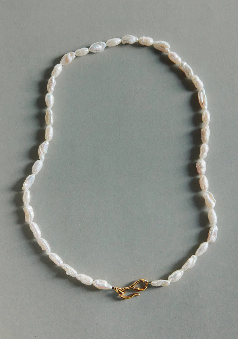 Designed and handcrafted in our Sydney studio, the Cielo Necklace features lustrous freshwater Keshi pearls and a sculptural clasp cast in Gold Vermeil.