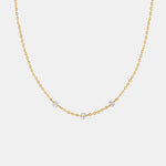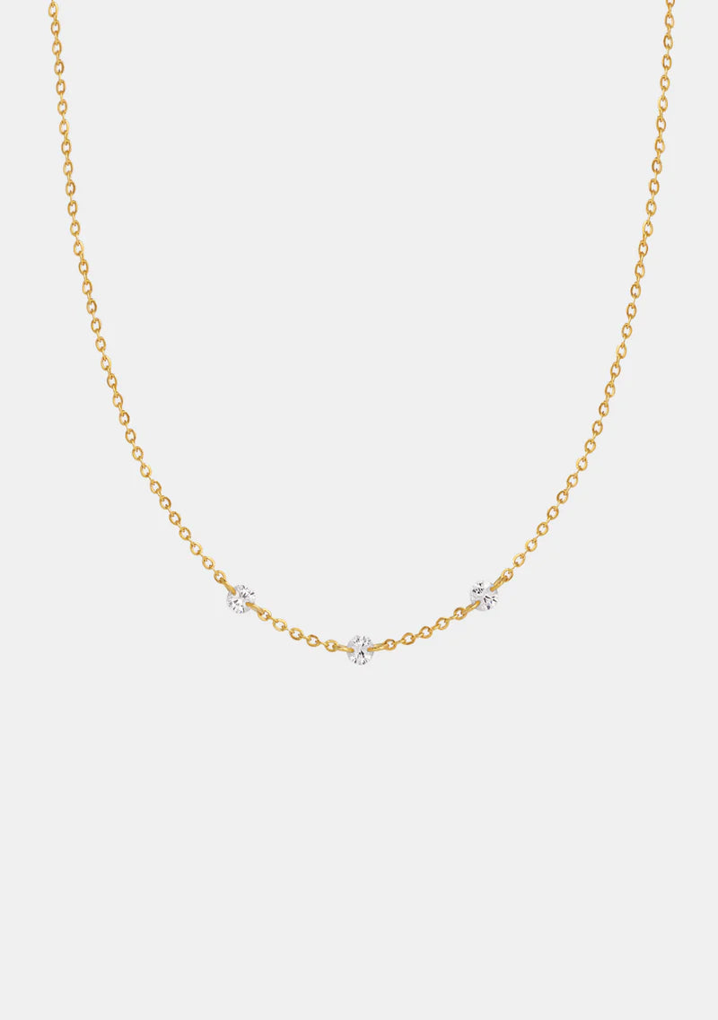 Featuring three luminous stones suspended along a fine chain, their radiance and delicacy enhanced by an innovative no-setting design that captures light from every angle - like sunlight dancing on water.