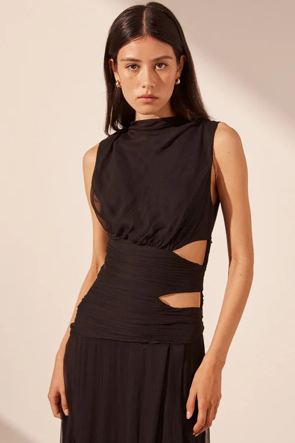 Shona Joy Claude Cut Out Side Split Maxi Dress | Black