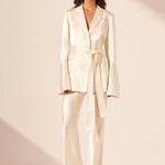 High waisted bias cut pant in a LENZING ECOVERO with a luxurious satin finish.