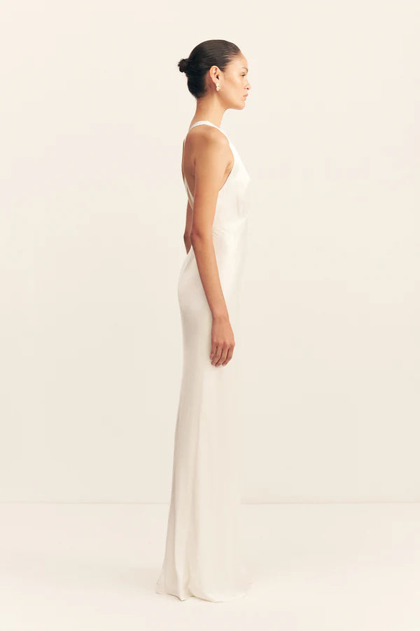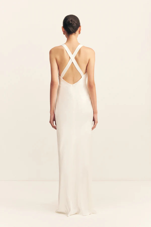 Shona Joy La Lune Plunged Cross Back Maxi Dress | White