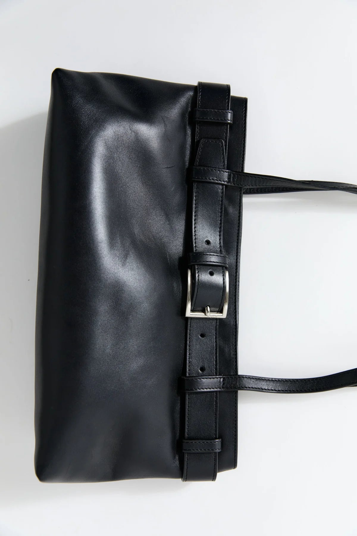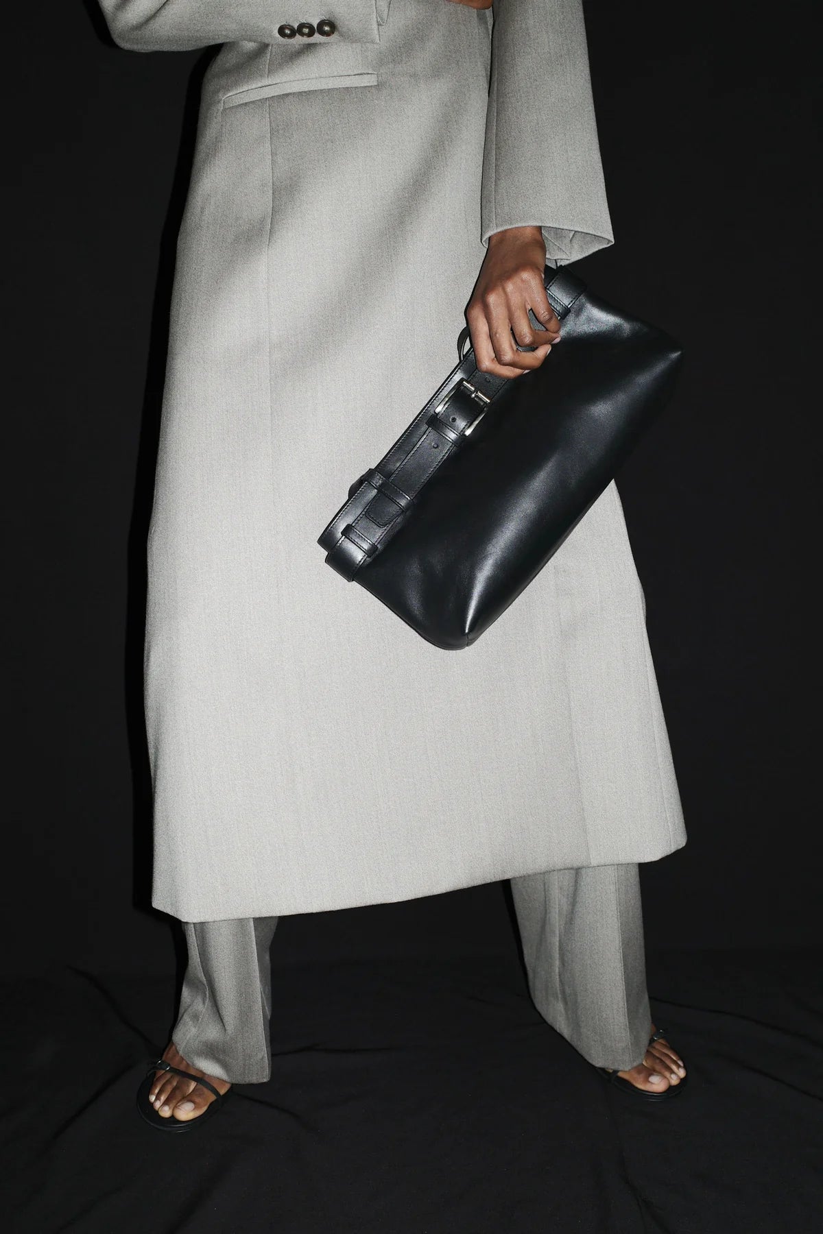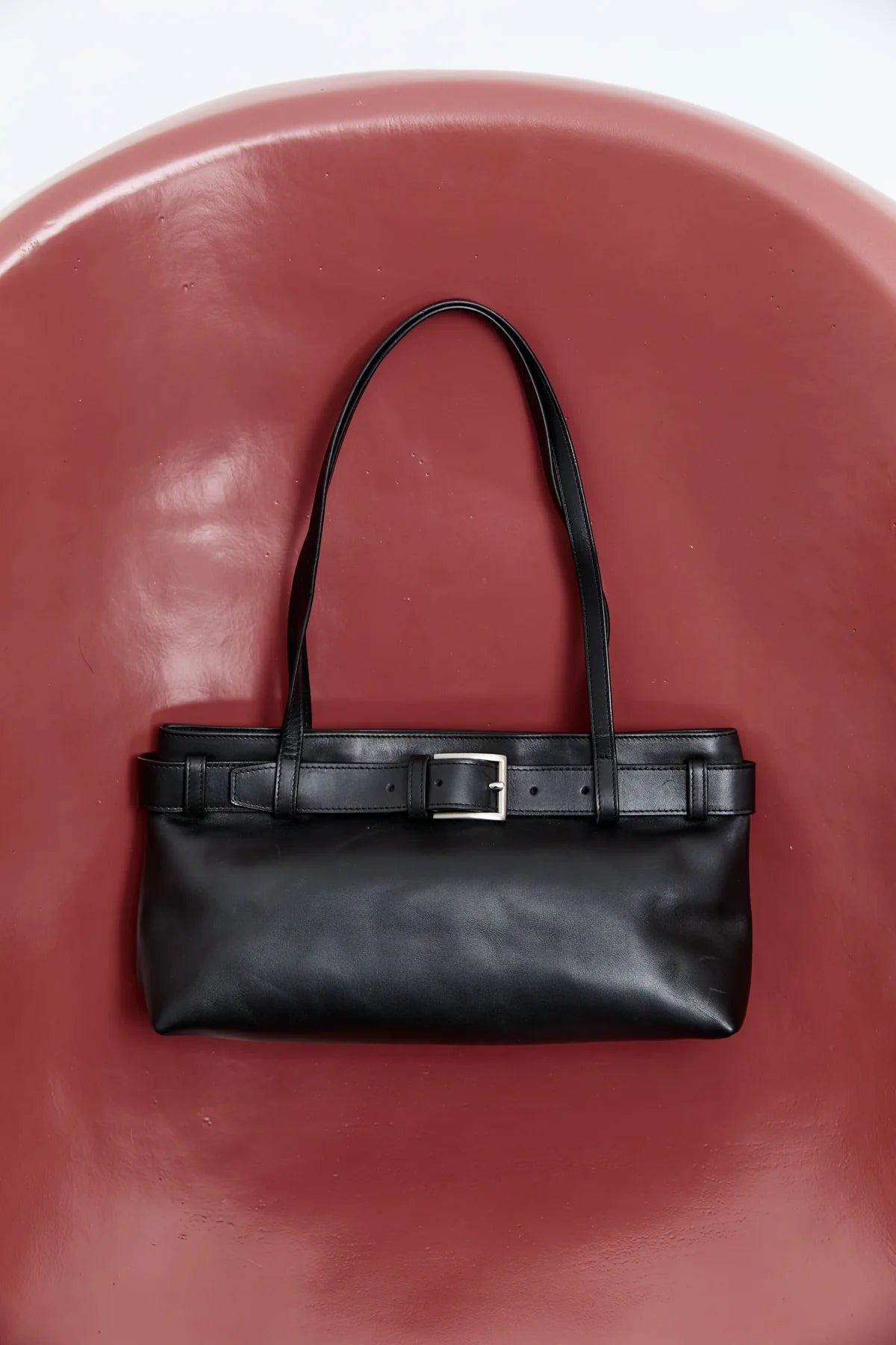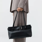 The Belt Detail Baguette is a minimal, slim shoulder bag crafted from smooth Bovine Leather and lined with Cotton twill. Designed with a detachable belt and magnetic closure. Refined and versatile, the Belt Detail Baguette offers a modern interpretation of the classic baguette bag.