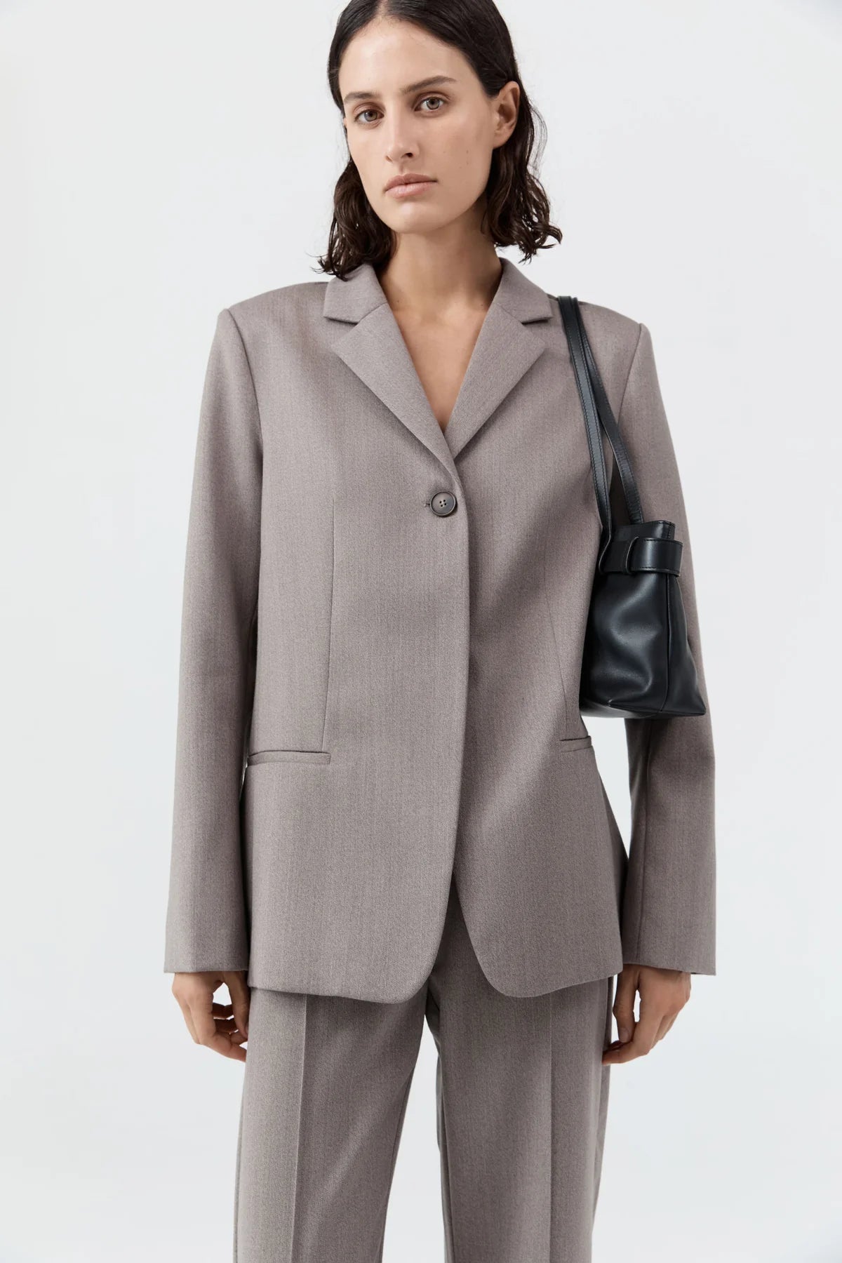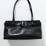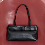 - Minimal slim shoulder bag, detachable belt detail, magnetic closure, internal pocket with zipper, lined
