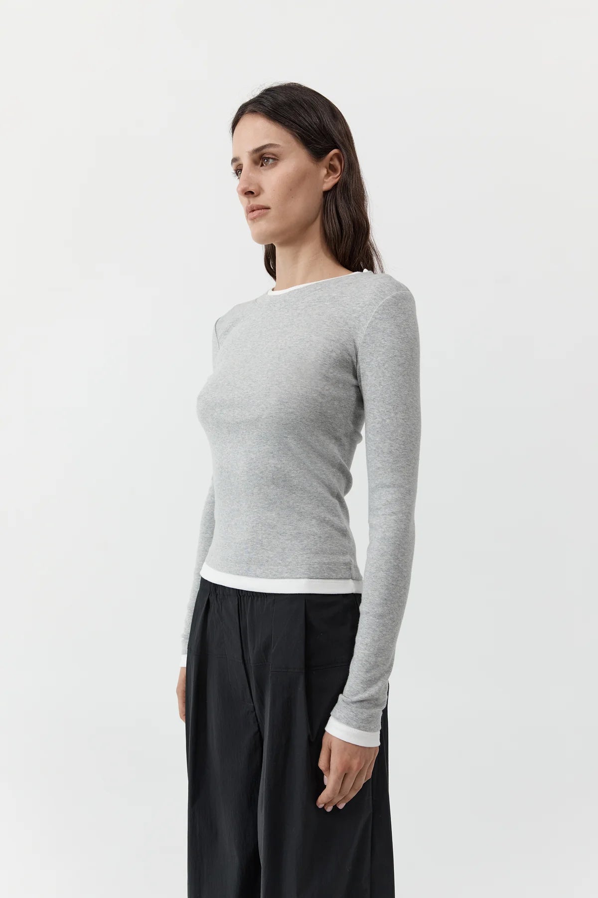 St Agni Organic Cotton Layered Long Sleeve | Grey Marle (PRE-ORDER)