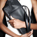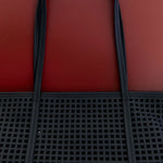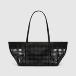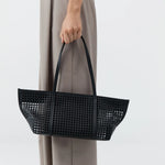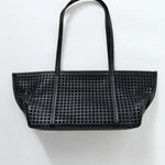 The Perforated Slim Bateau Tote is a structured shoulder bag with a distinctive grid-cut leather body that creates a light, architectural effect. Featuring an elongated bateau silhouette, framed with plain leather panels at the base and sides. The Perforated Slim Bateau Tote is an elevated option for minimal everyday styling.