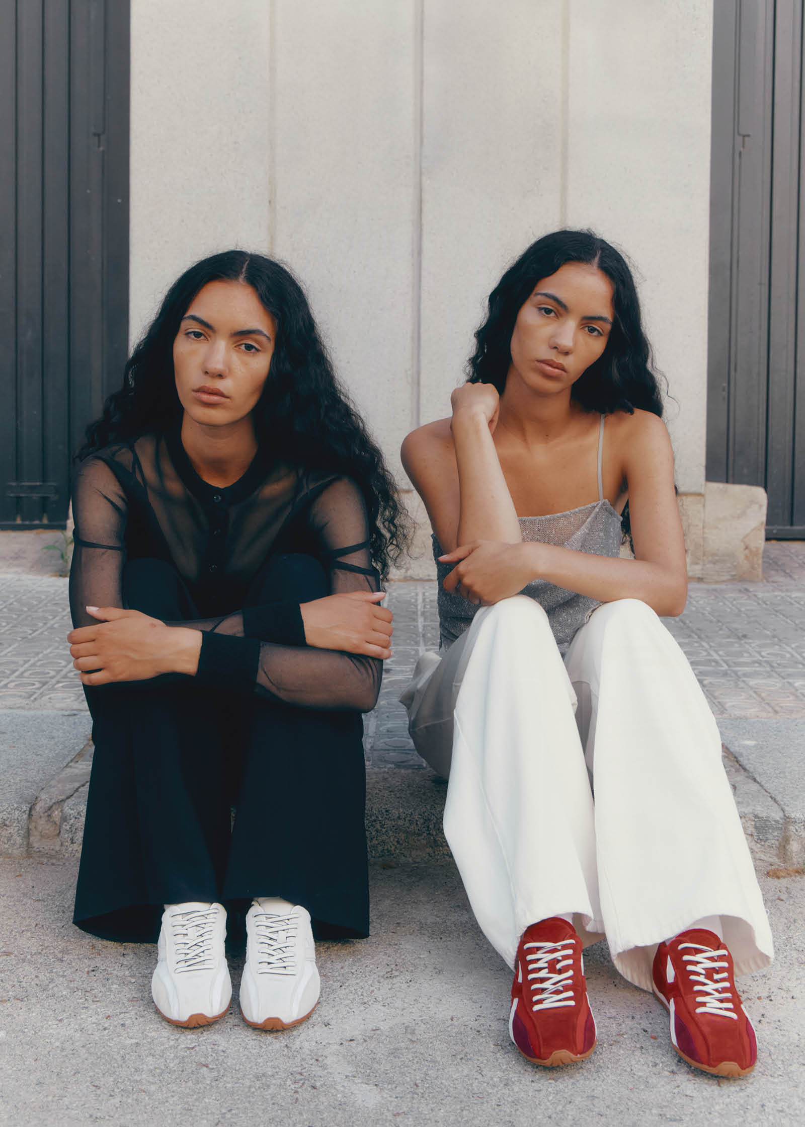 Red sneakers with burgundy and cream accents Introducing the Tb.304 sneakers, crafted with a vivid red nylon base layered with rich burgundy and light cream suede and leather. The contrast of colors and textures adds movement and energy to the silhouette, delivering a vibrant look with a modern edge.