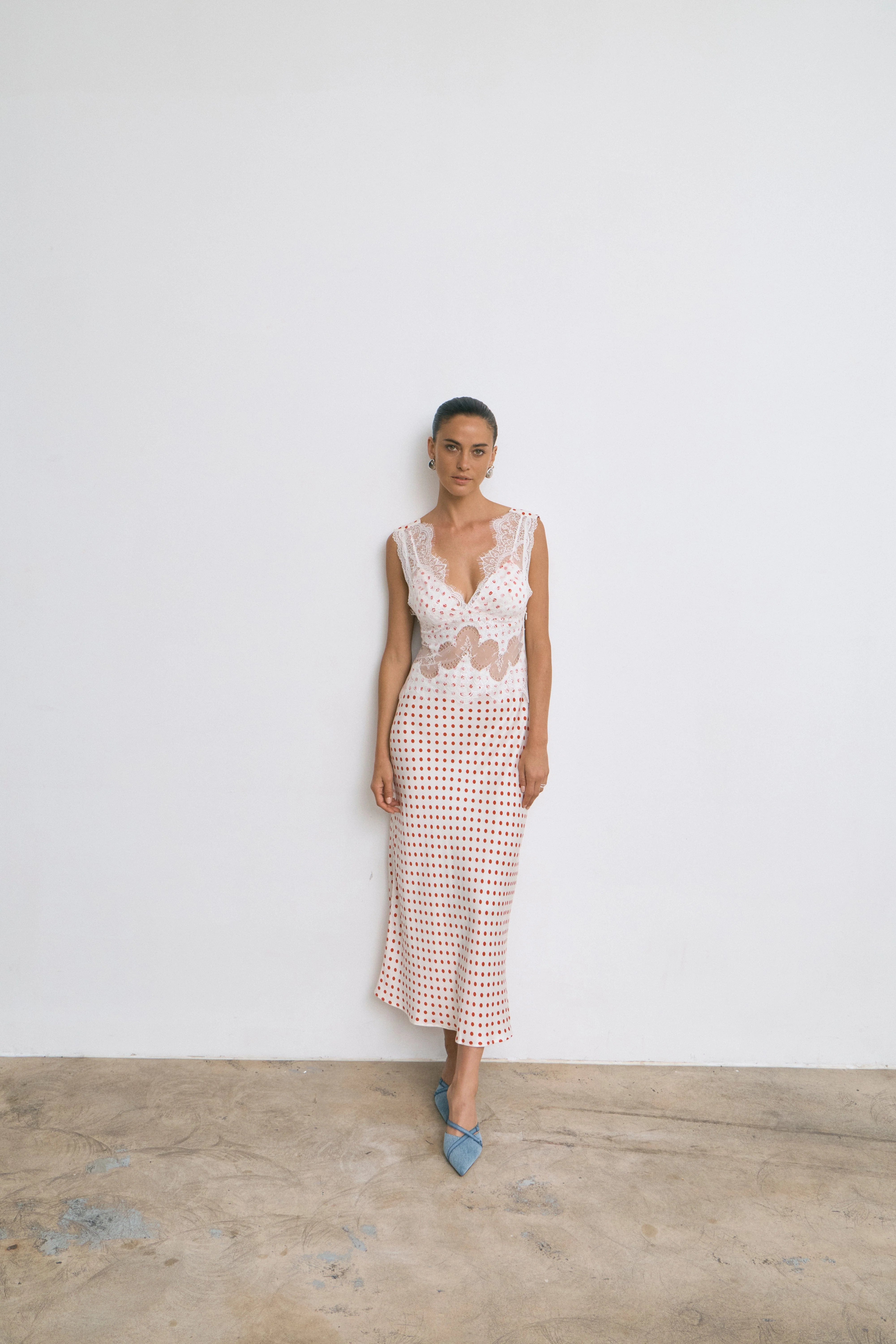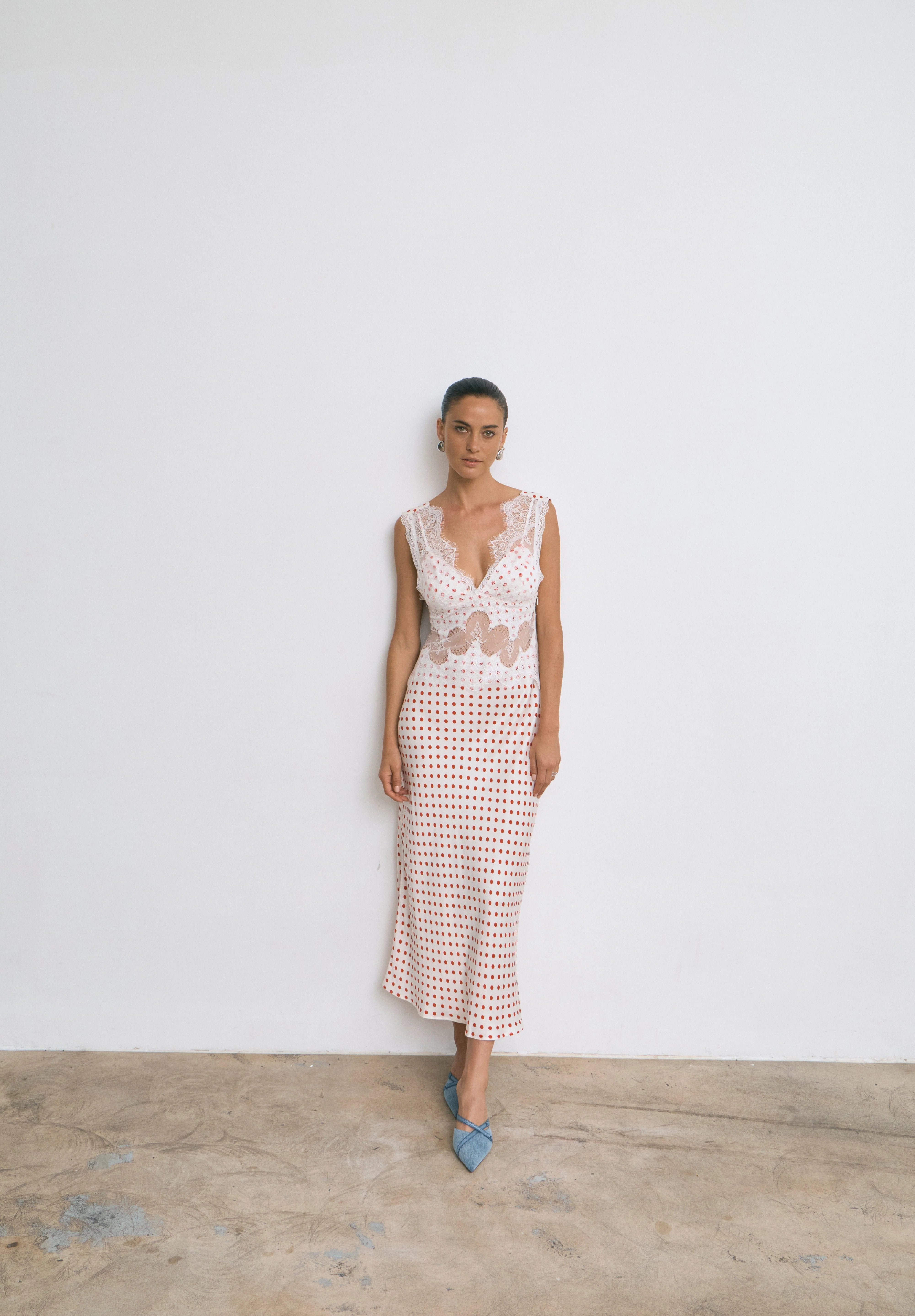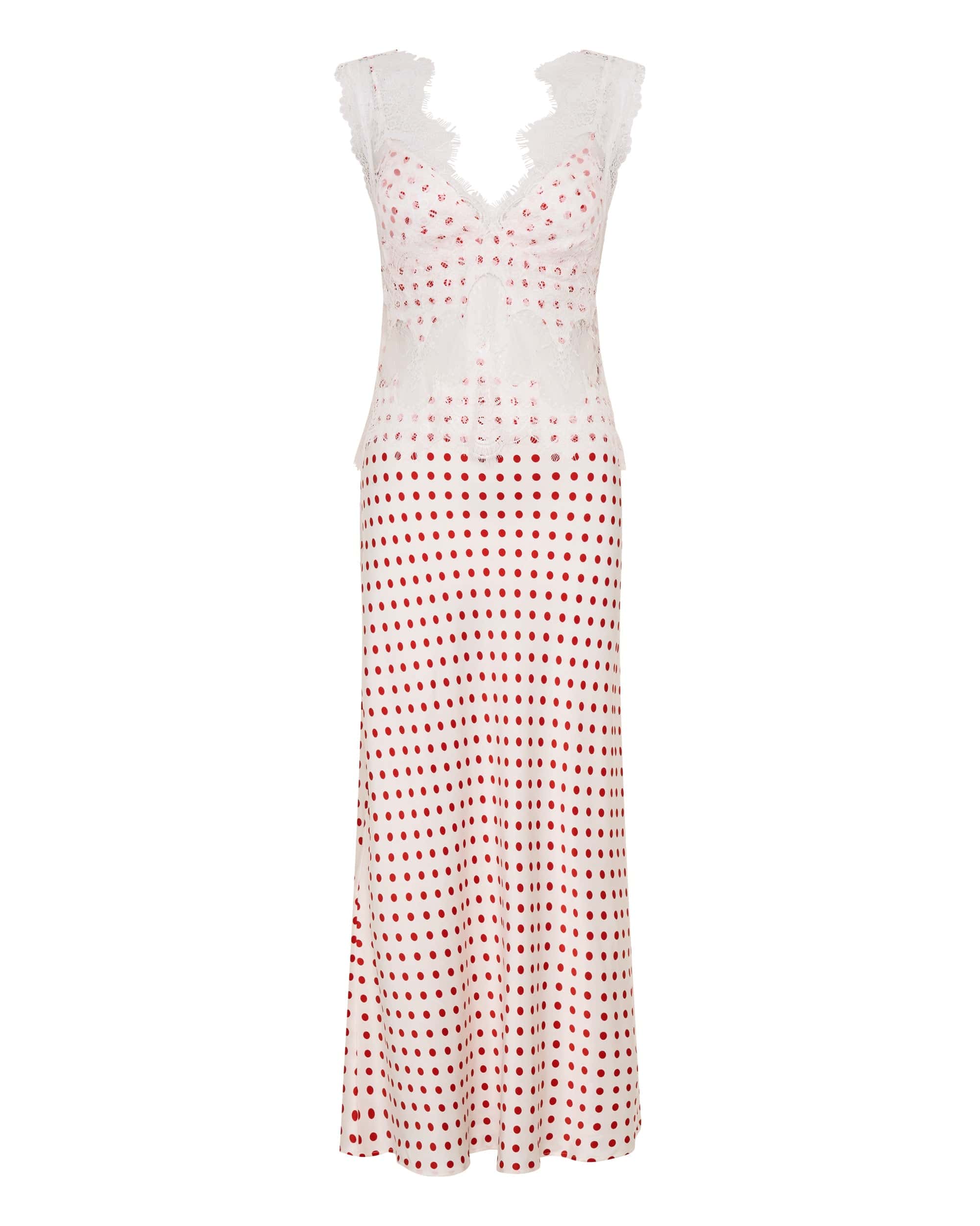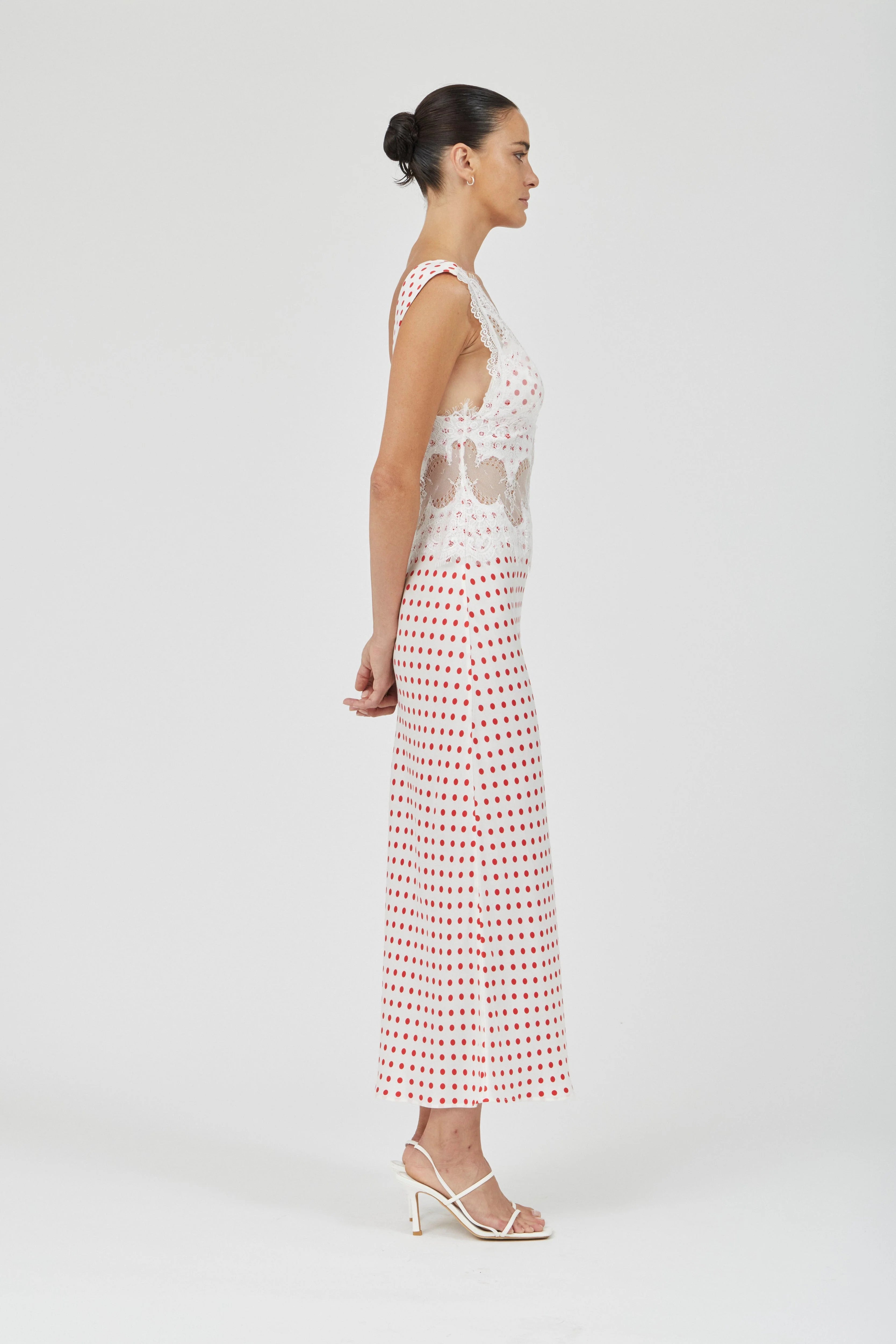 Third Form Visions Lace Deep V Maxi Dress | Red Polka Dot