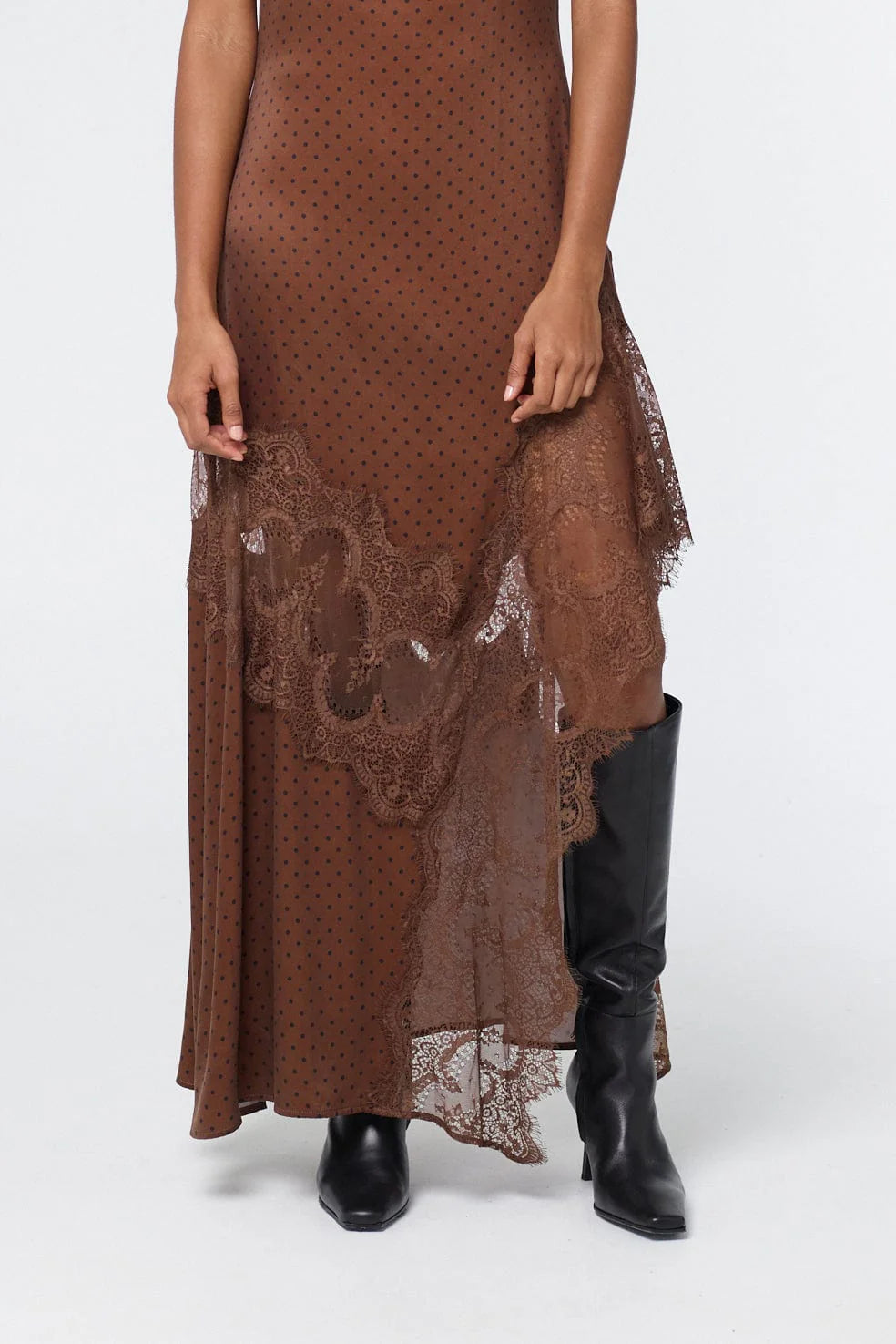 Third Form Visions Lace Frill Dress | Chocolate Polka Dot