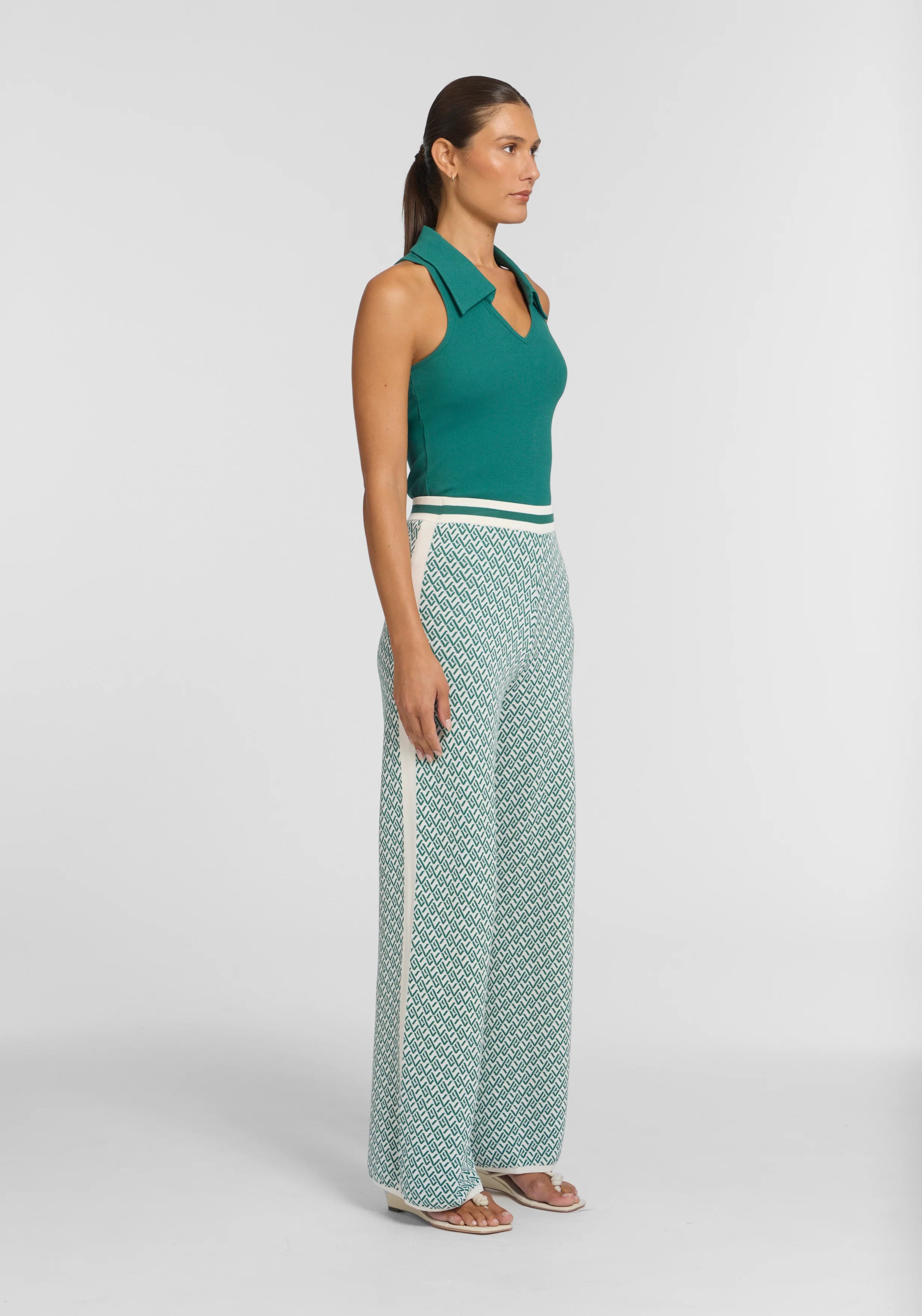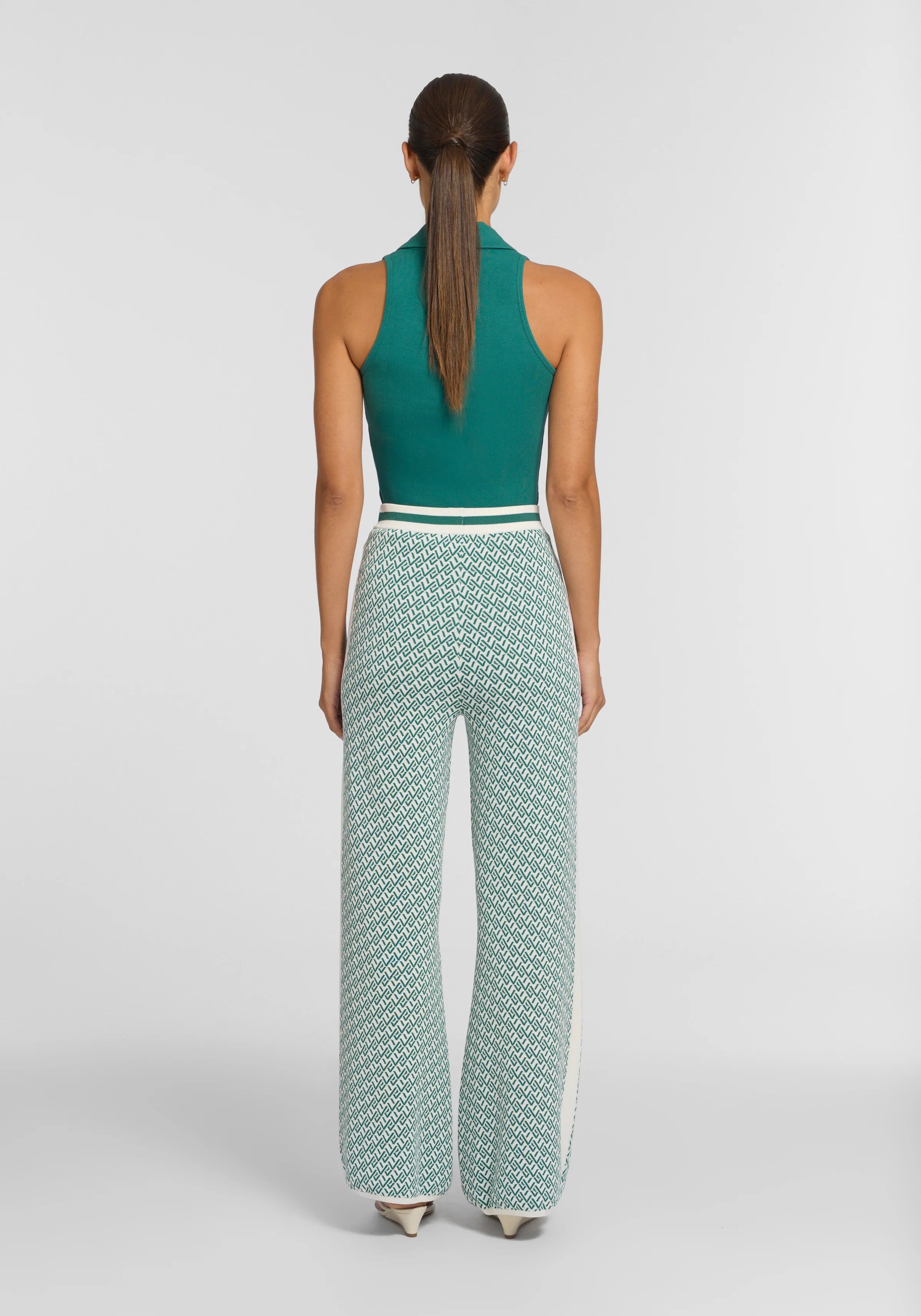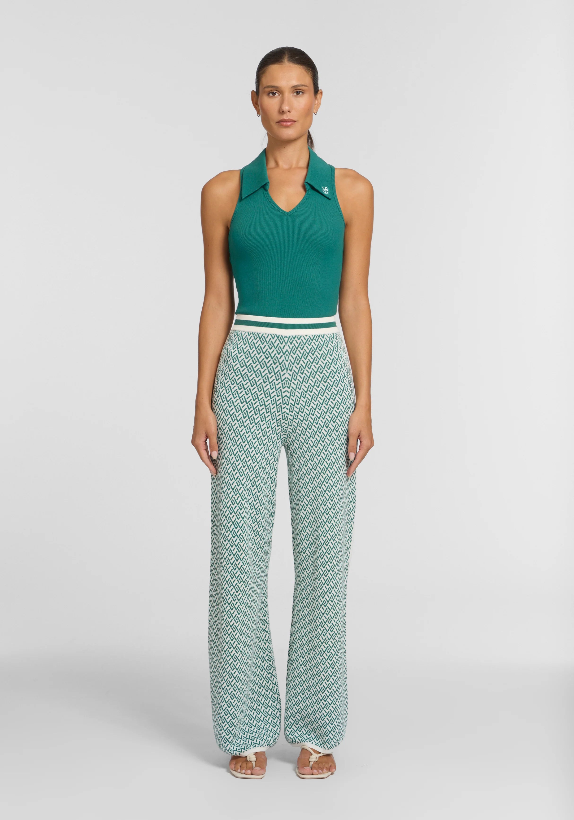The Blackwell Pant reimagines V&W insignia in a new jacquard pattern, knitted in a lightweight cotton blend. Its wide-leg silhouette with an elasticated ribbed waistband and chic side panels delivers luxurious, restorative style. Pair with the Lifetime Top for a relaxed set, effortlessly carrying you from courtside to beachside escapes.