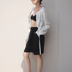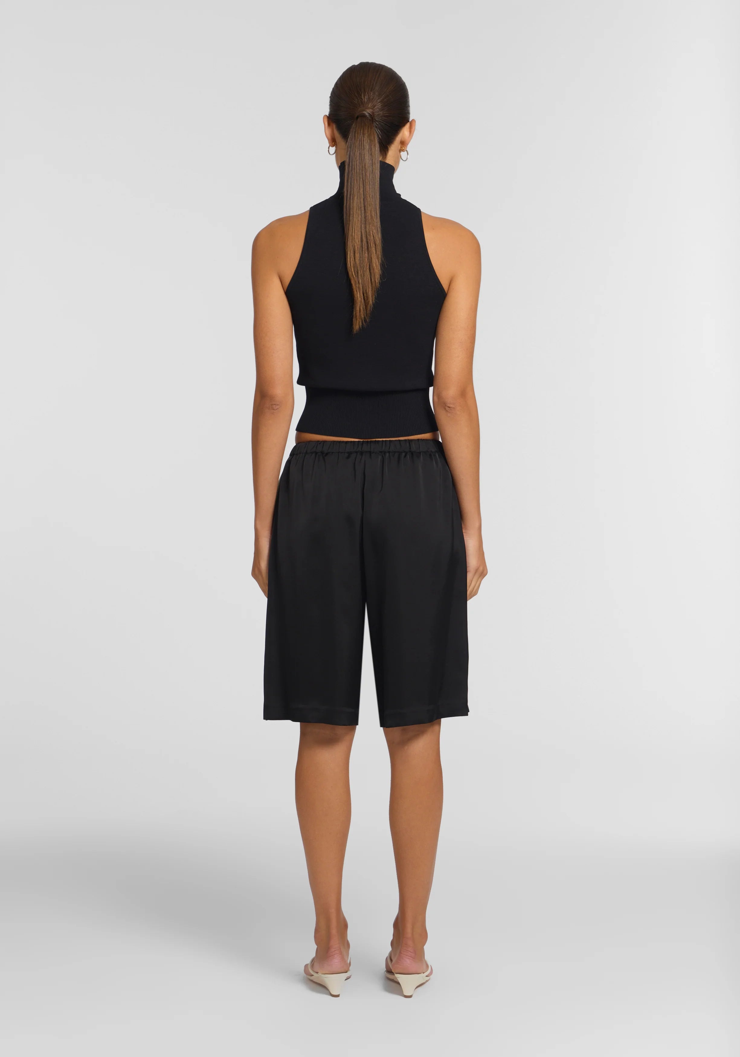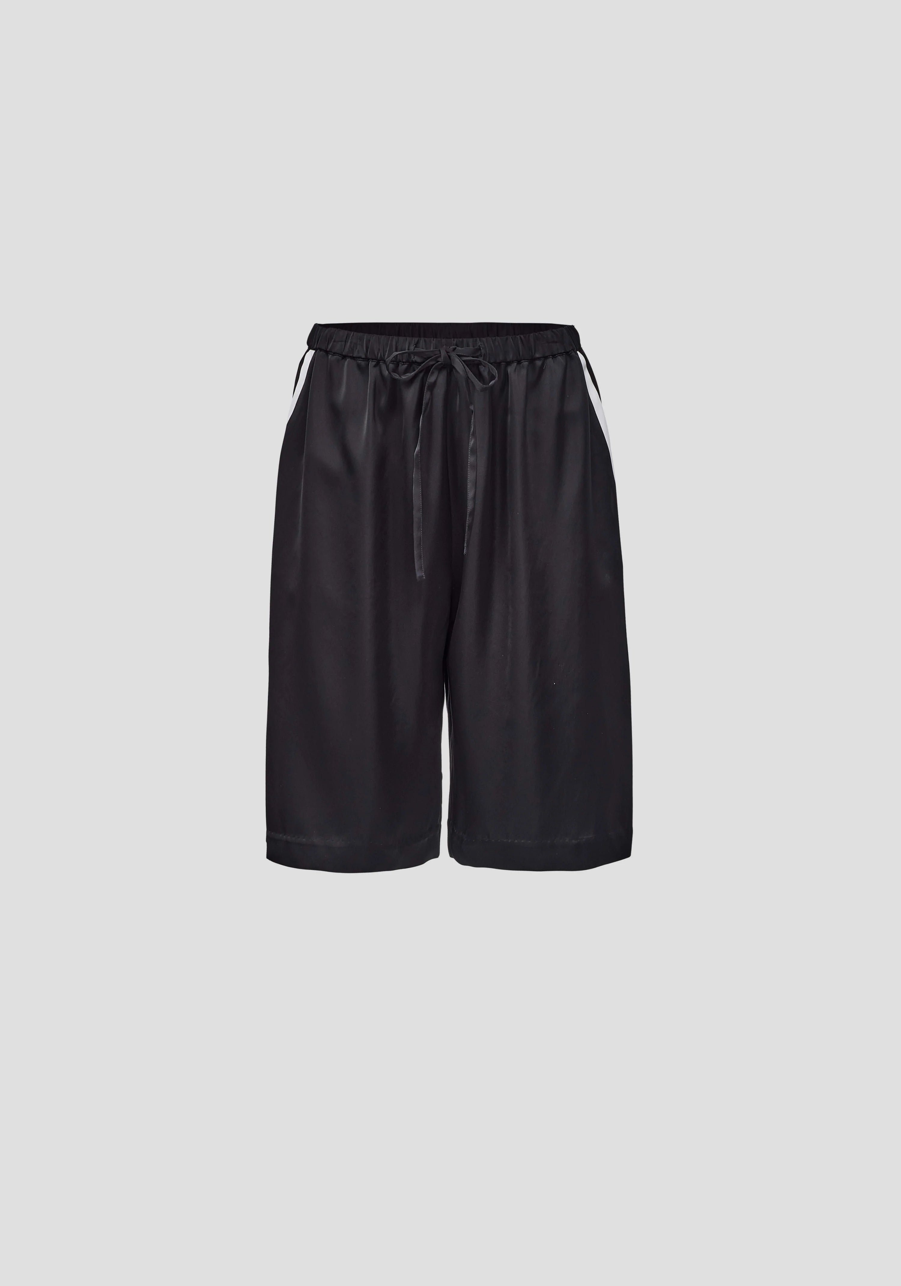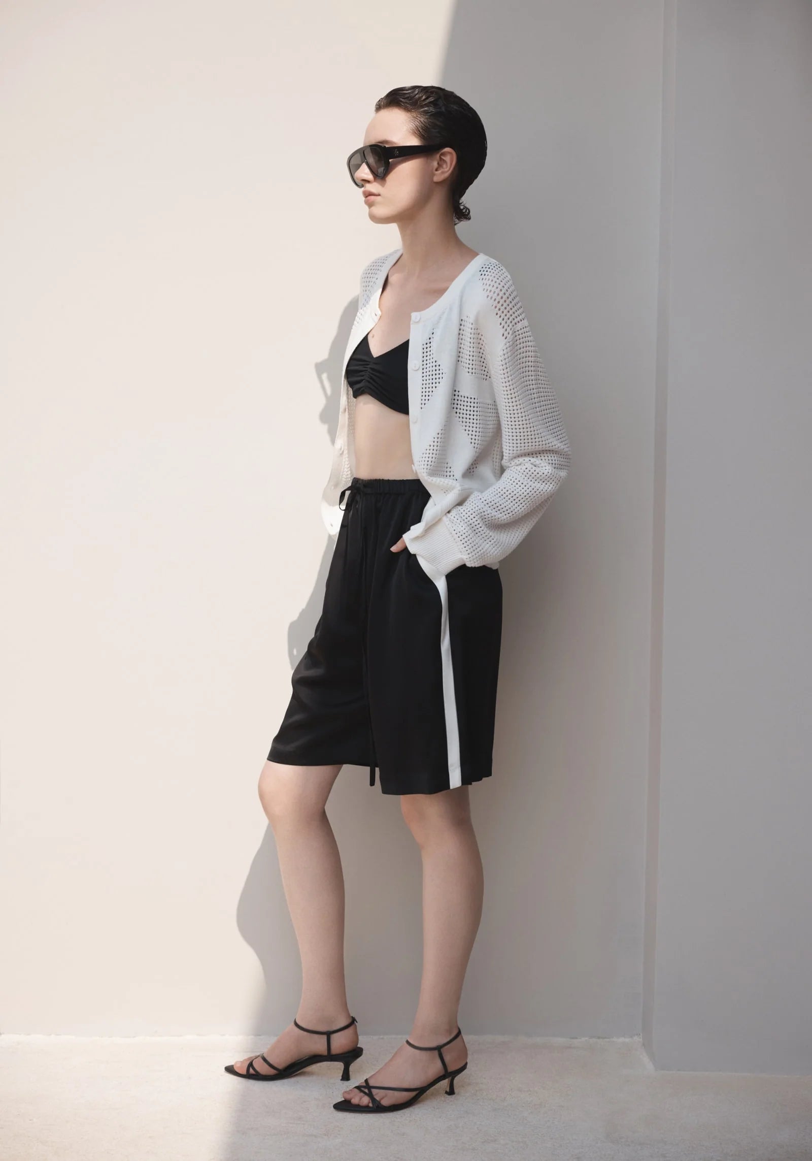 The Spotlight Short reimagines our best-selling Rocky Pant, tailored in our signature black cupro blend. With a relaxed, long short silhouette, elasticated waistband with drawcord, pockets, and a contrast ivory panel down the side seam, it offers fluid, sophisticated ease. A versatile sports-luxe essential, perfect for work, holidays, and all the moments in between.
